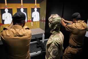 10:20 Policiais militares passam por instrução de tiro em caminhão de treinamento com simulador Policiais militares que trabalham na Companhia de Comandos e Serviços (CCS) e nas Diretorias da PM estão passando por instruções de tiros no caminhão de simulador de tiros da Polícia Civil do Paraná.