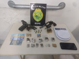18:00 BOPE apreende armas de fogo, munições e drogas durante ação na Capital e RMC Por Marcia Santos Jornalista PMPR Duas armas de fogo, carregador, munições, pontos de LSD, comprimidos de ecstasy e maconha foram apreend