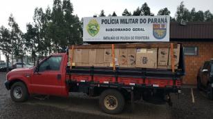 11:00 Caixas de cigarro e outros produtos contrabandeados são apreendidos pelo BPFron na Operação Muralha Por Marcia Santos Jornalista PMPR