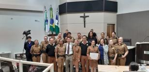 17:00 Câmara Municipal entrega Moção de Aplausos para policiais militares femininas de Guarapuava, no Centro-Sul do estado Por Marcia Santos Jornalista PMPR