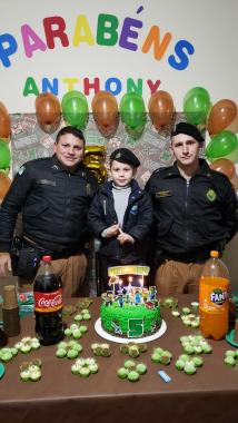 16:00 Policiais militares fazem surpresa em festa de aniversário de menino de 5 anos em Carambeí (PR) Por Marcia Santos Jornalista PMPR