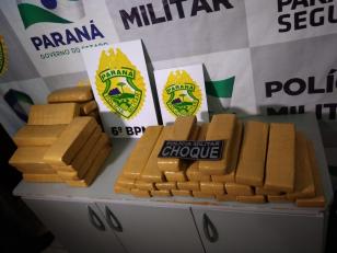 12:11 Pelotão de Choque da PM de Cascavel apreende mais de 30 quilos de maconha e encaminha suspeitos Por Marcia Santos Jornalista PMPR Mais de 30 quilos de maconha foram apreendidos na última terça-feira (19/02), em Cascavel, na região Oeste do estado, durante ação conduzida por po