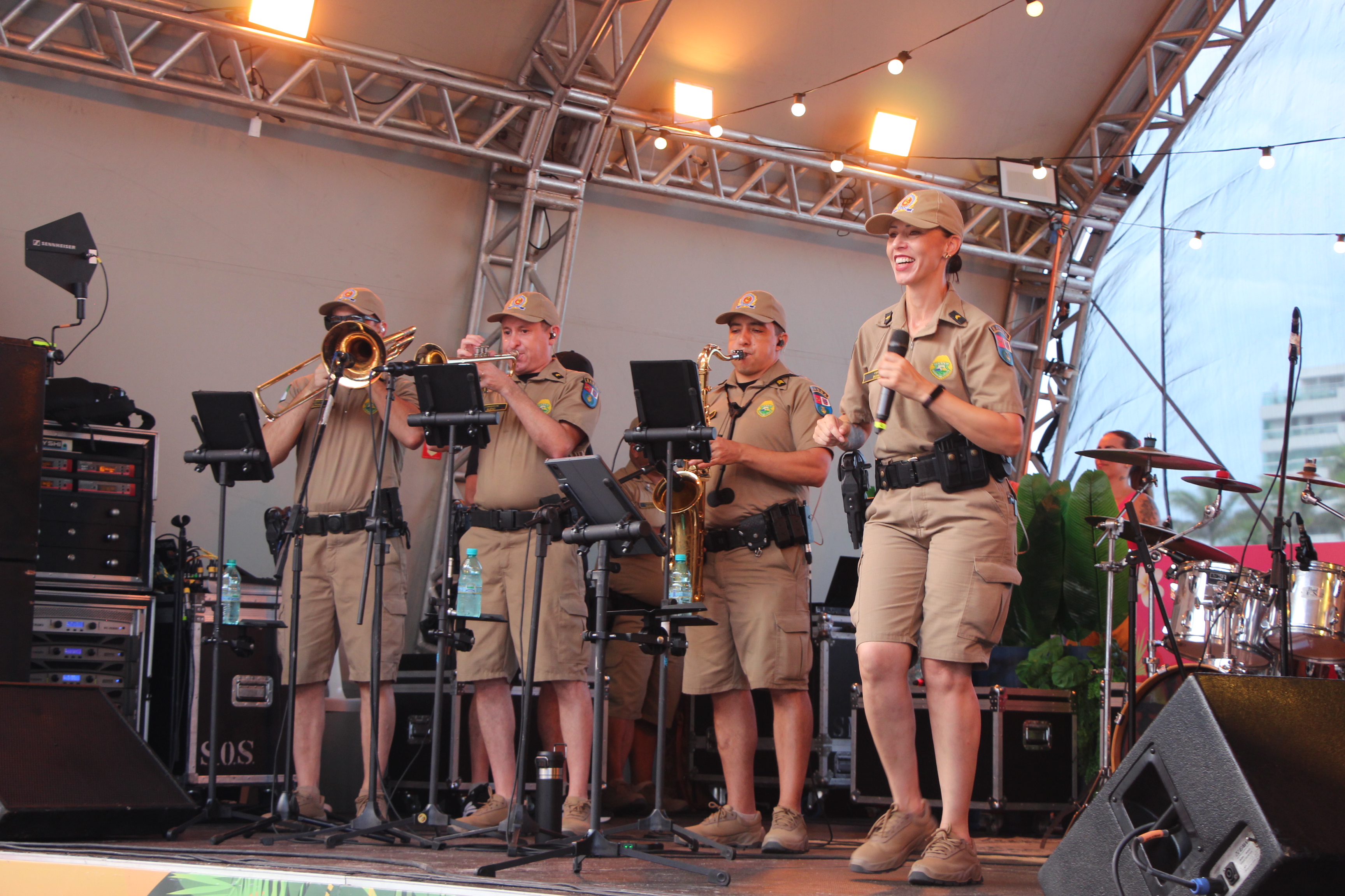 Banda da PMPR agita entardecer dos veranistas durante mais um domingo em Matinhos