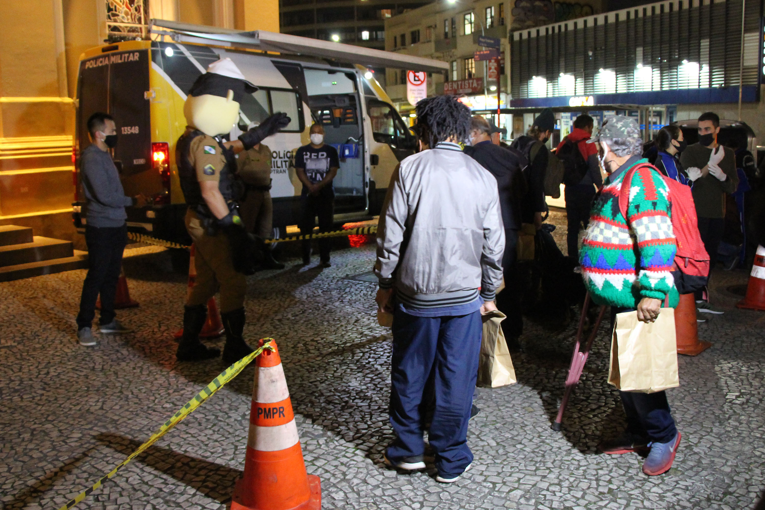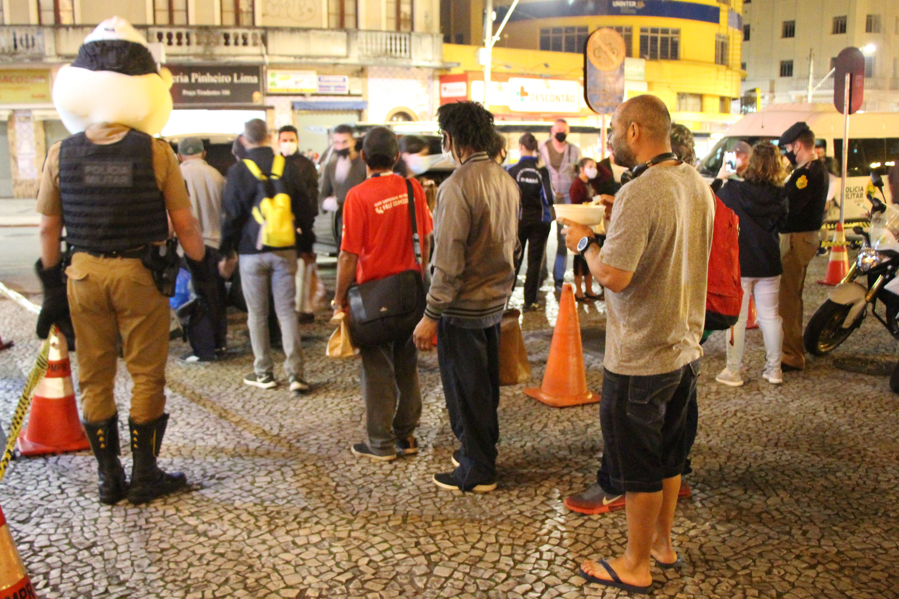 Em meio à pandemia, policiais militares criam projeto social e entregam alimentos para pessoas em situação de rua na Capital Foto: Soldado Fernando Chauchuti