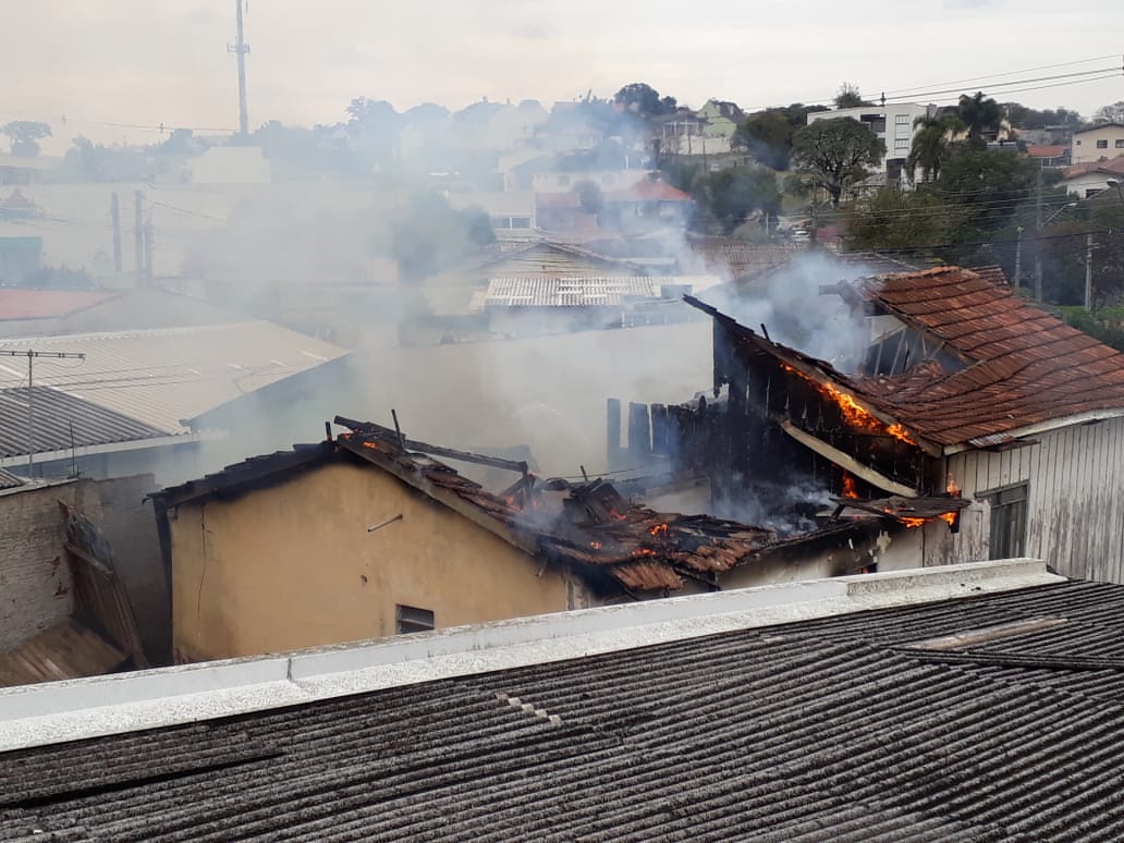 Equipe do BPTran encontra casa em chama durante patrulhamento no bairro Uberaba em Curitiba