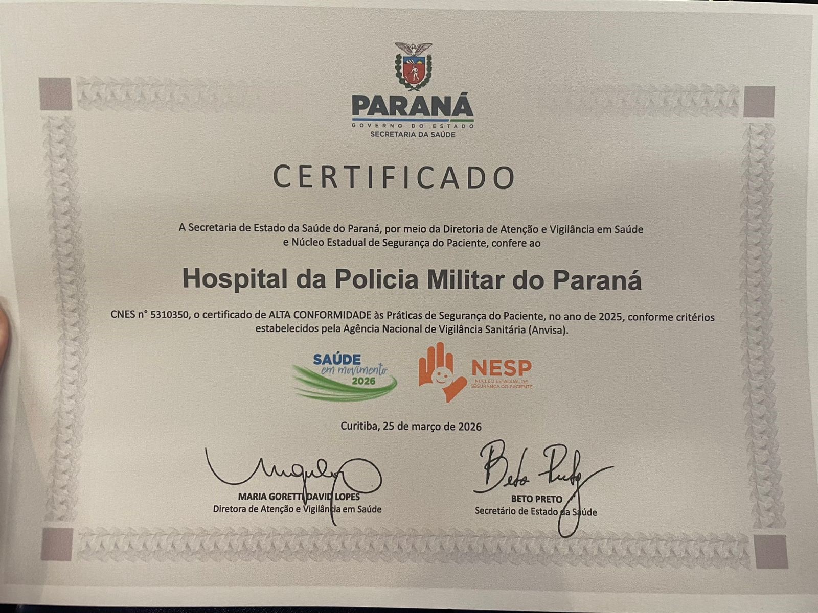 Excelência em saúde: Hospital da PMPR é certificado pelo segundo ano consecutivo