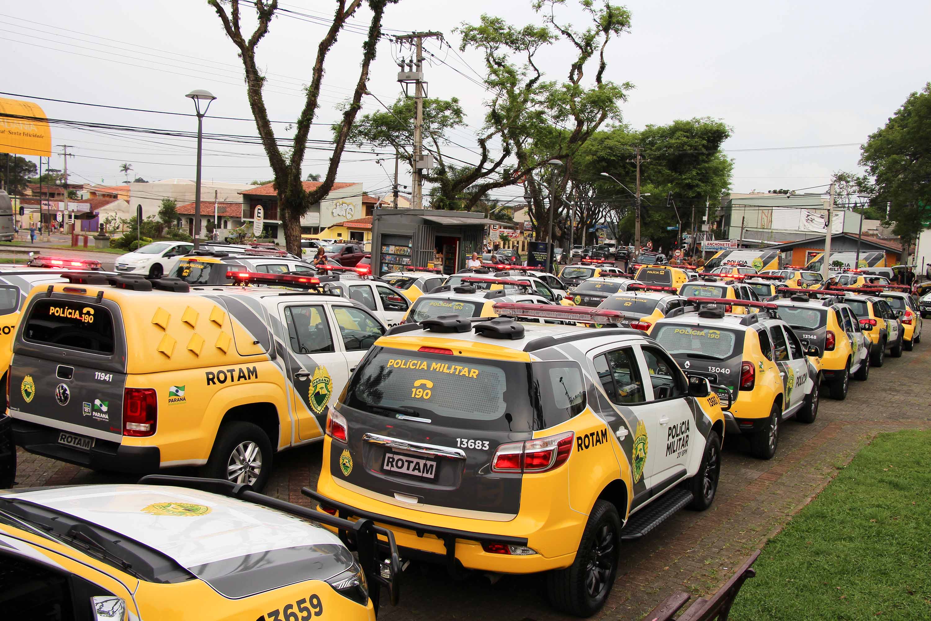 Curitiba, 18 de Outubro de 2019. Operação Todos Por Um. Foto: Viaturas saindo em patrulhamento.