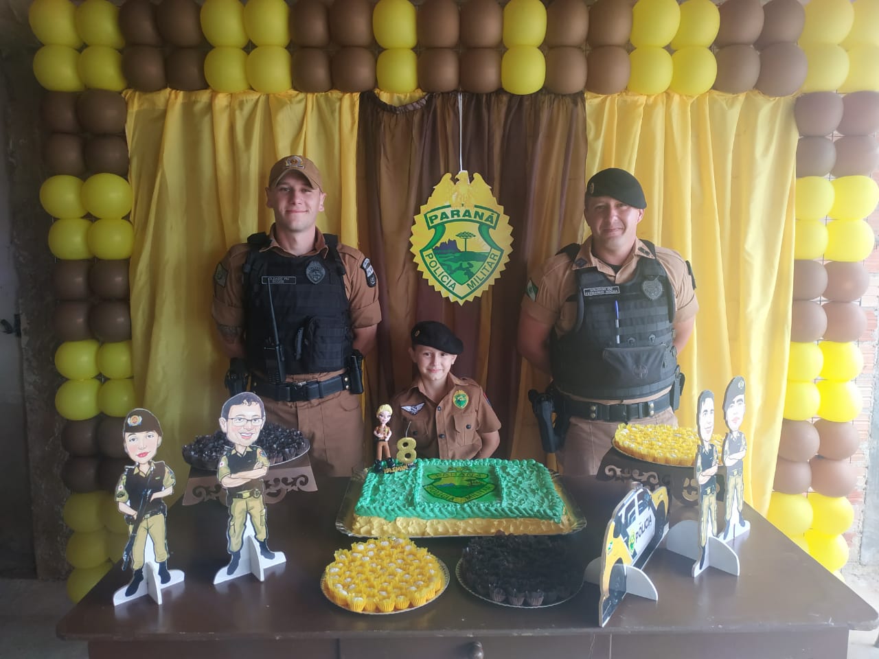 Policiais militares fazem presença na festa de aniversário de 8 anos de Yasmin em Fazenda Rio Grande, Região Metropolitana de Curitiba
