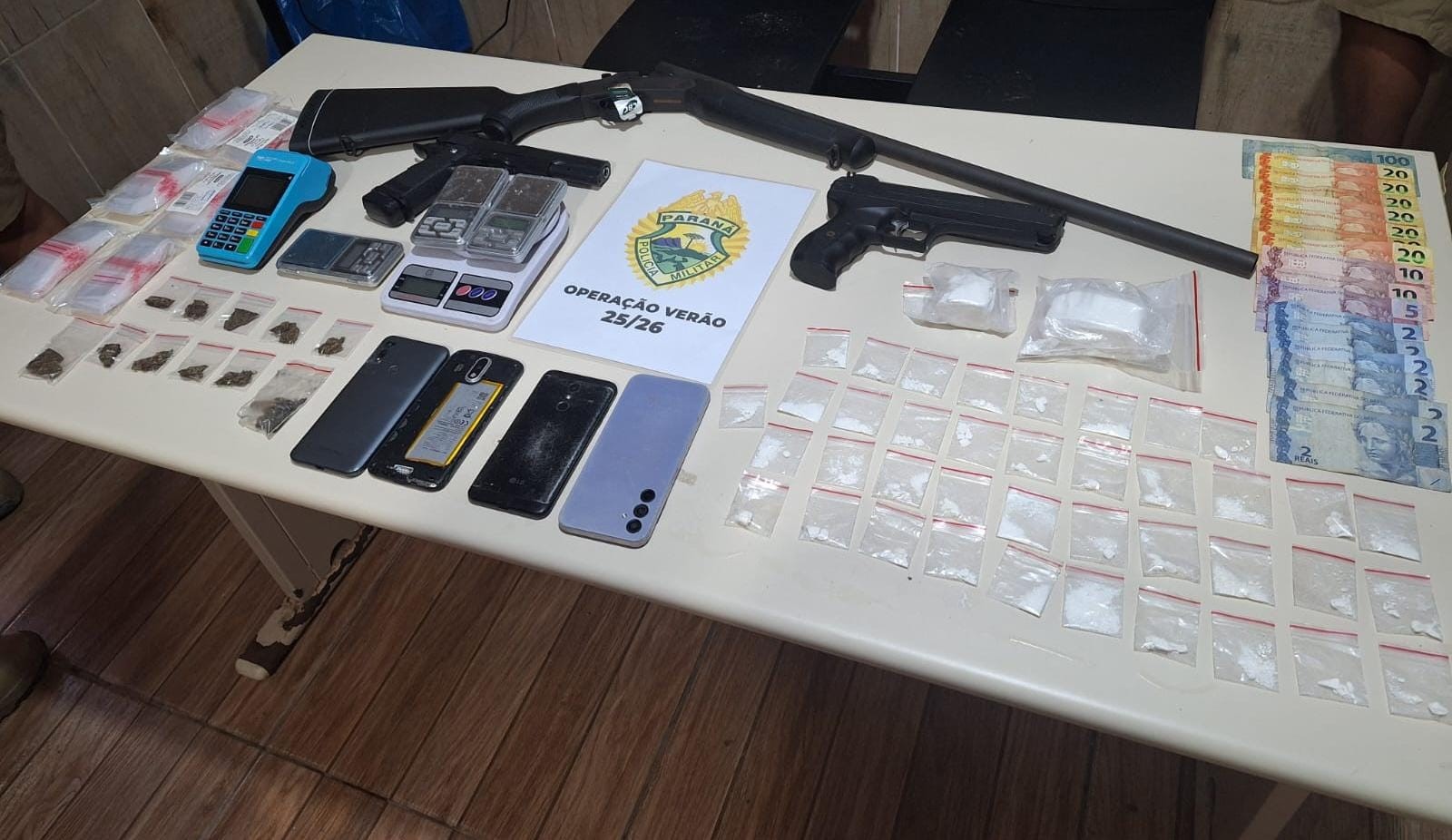 PMPR prende suspeito com armas e drogas em Pontal do Paraná