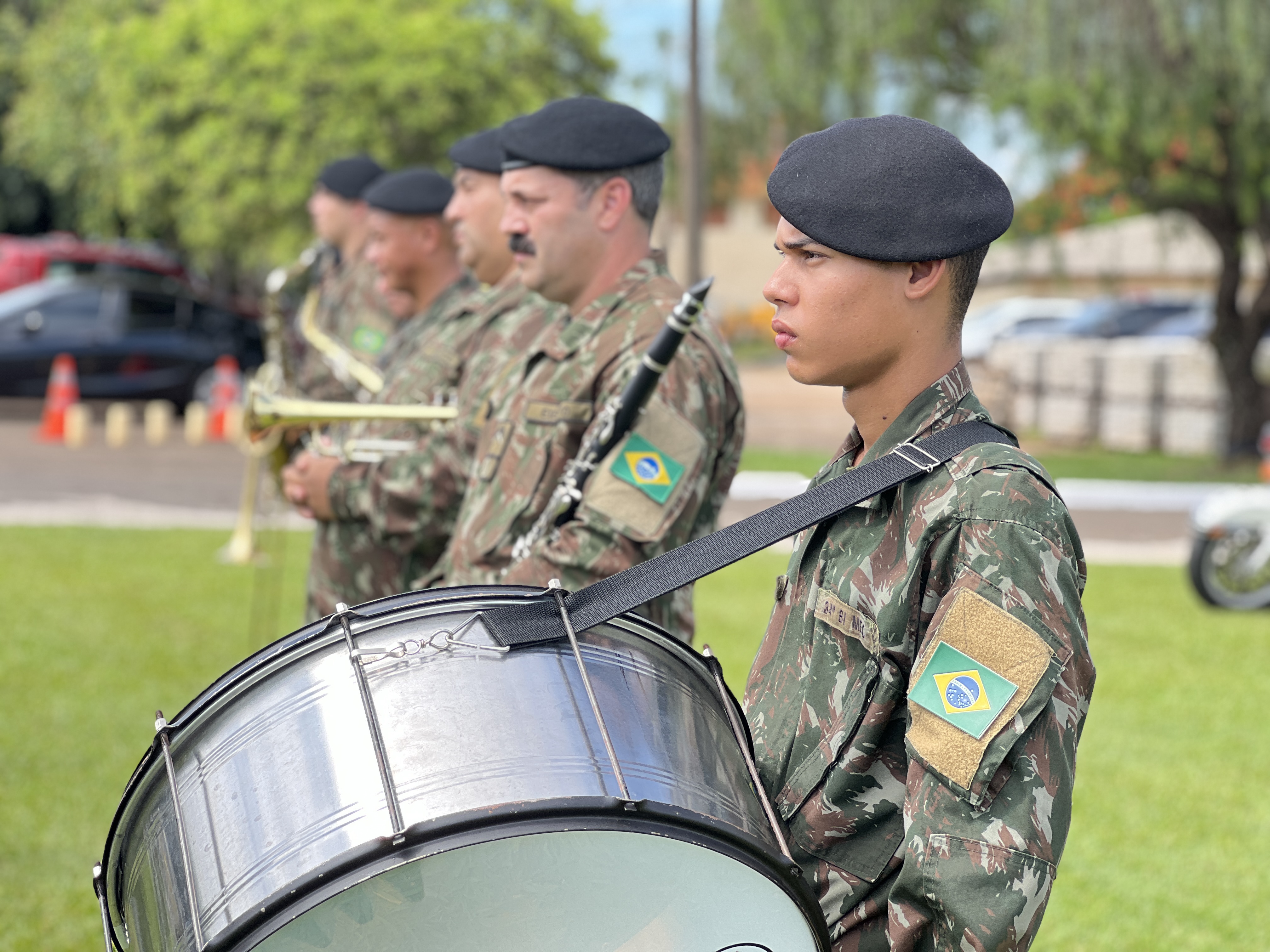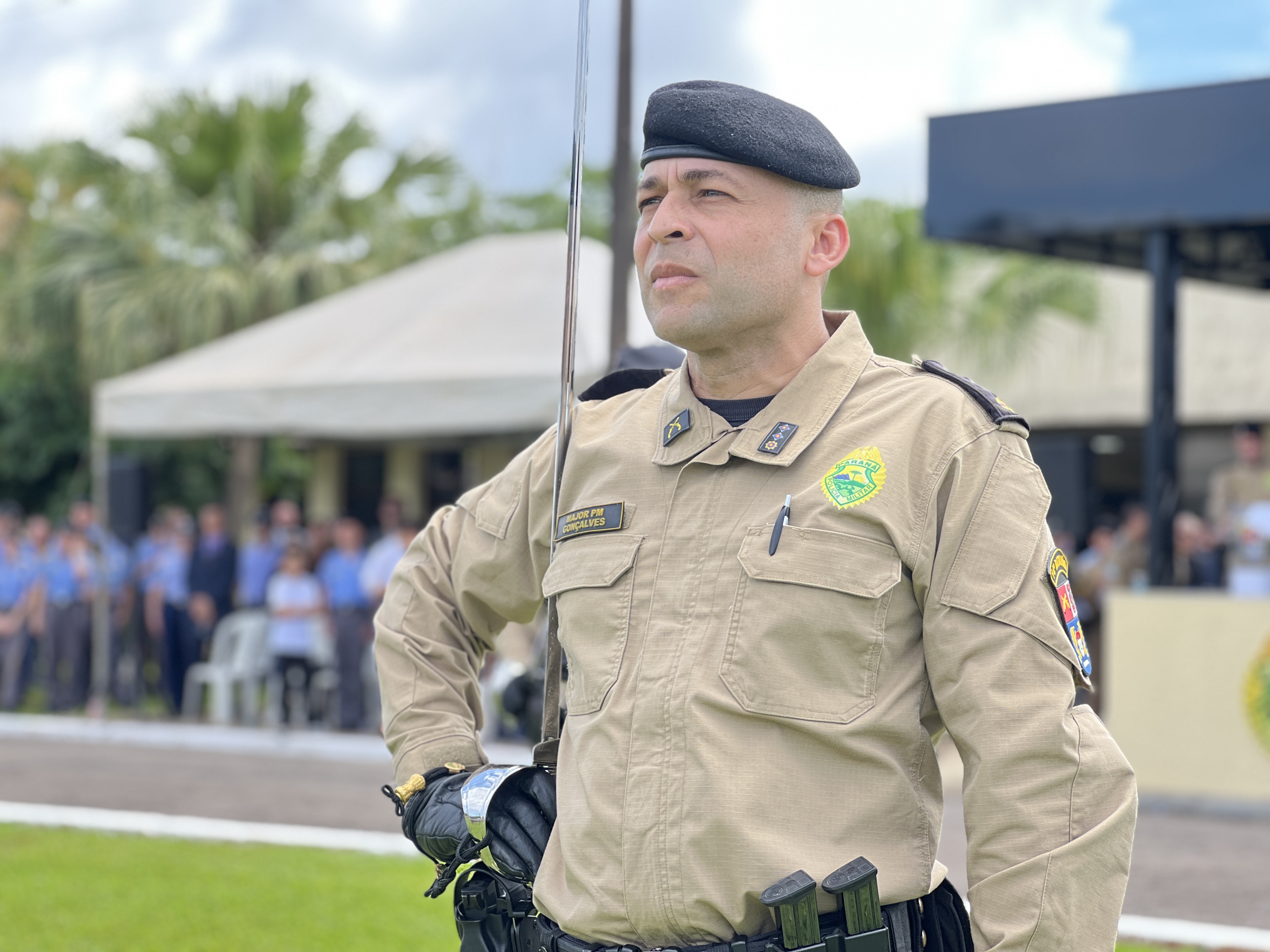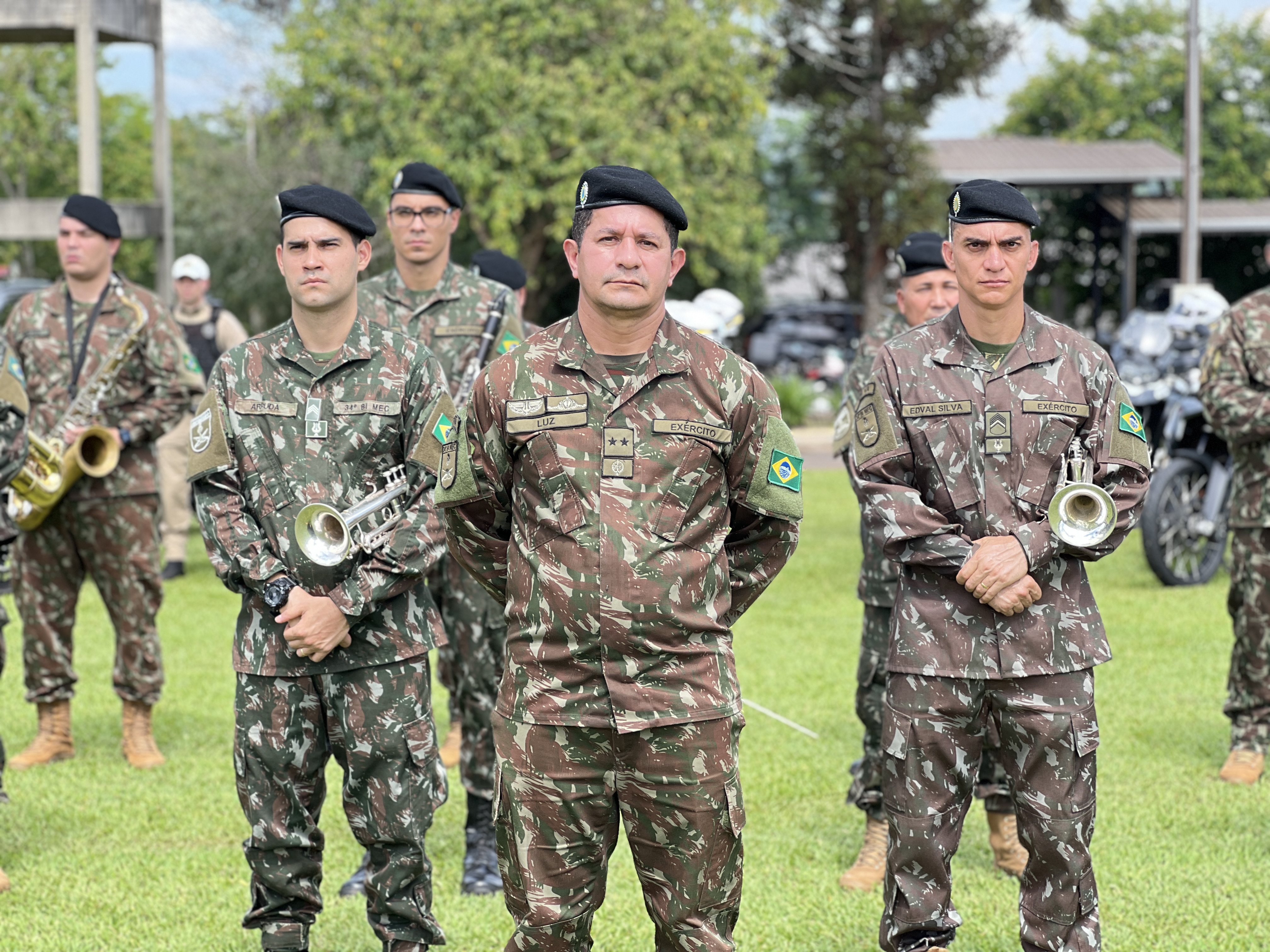 Após a transmissão de comando, os dois oficiais deslocaram-se para a revista à tropa, momento que reforça a hierarquia e a continuidade do trabalho operacional da unidade.