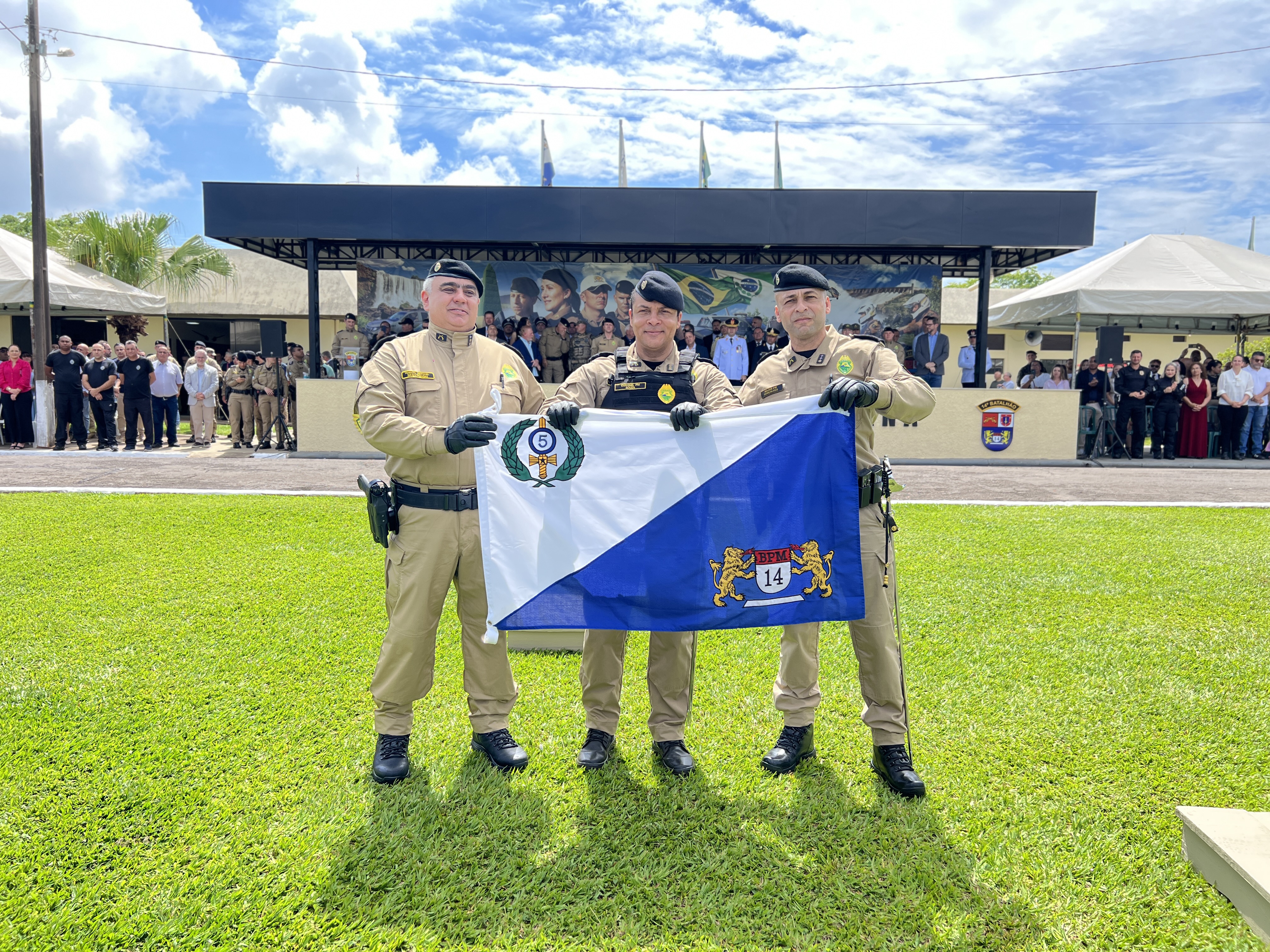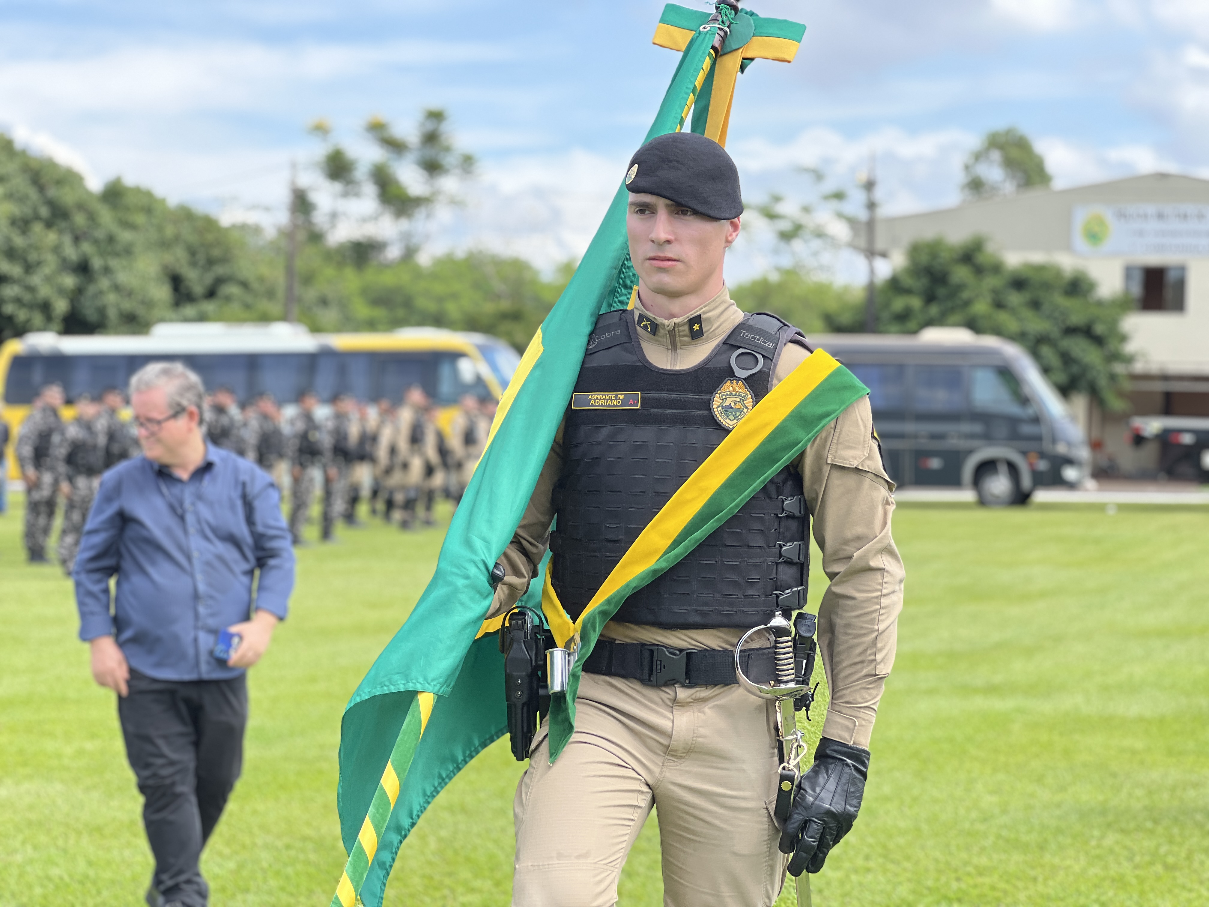 Encerrando a solenidade, a tropa do 14º BPM realizou um desfile em continência ao novo comandante, demonstrando disciplina, organização e respeito à nova chefia. Sob o comando do capitão Gois, a formação avançou com a Bandeira Nacional e a Bandeira do Estado do Paraná.