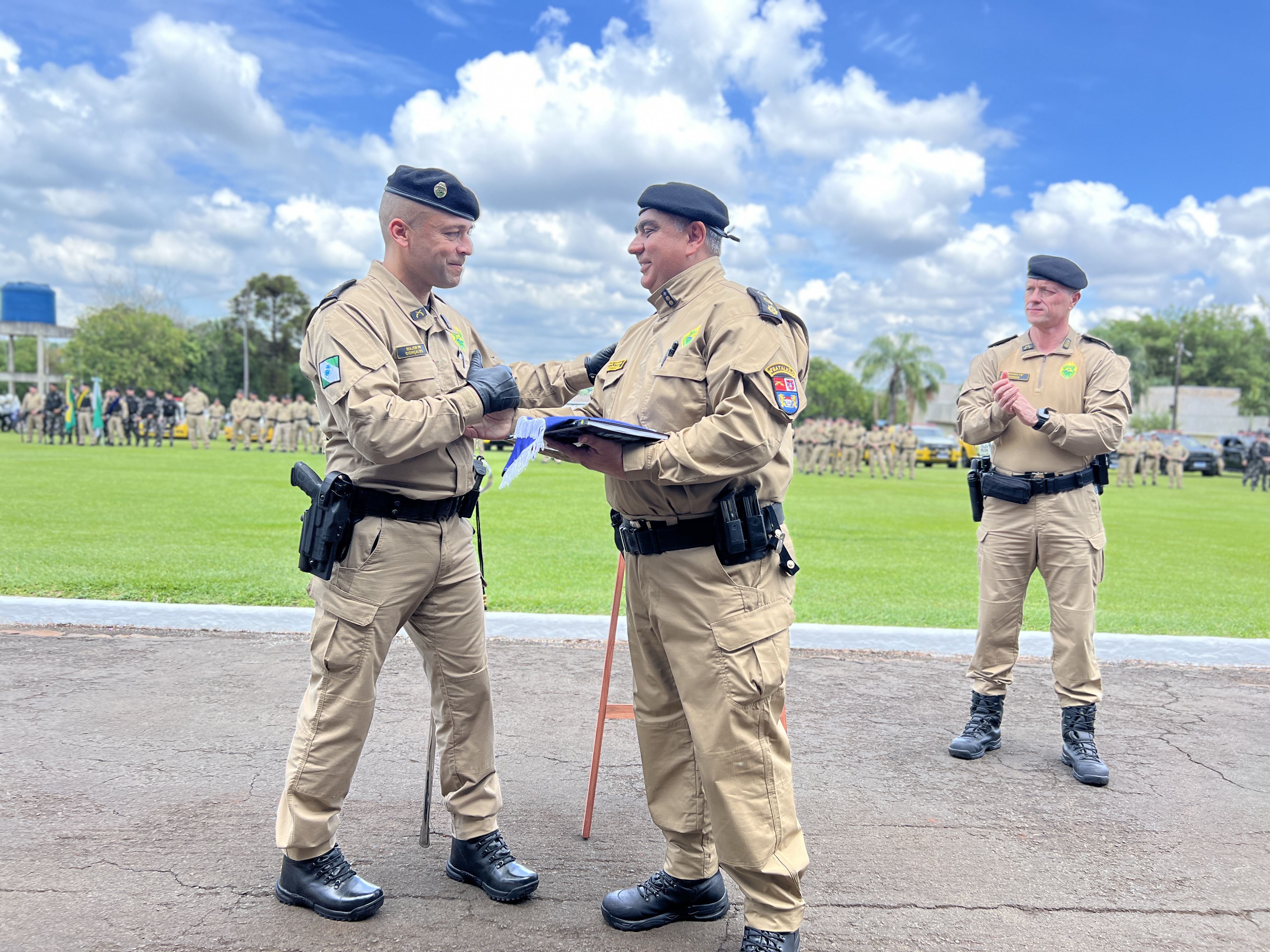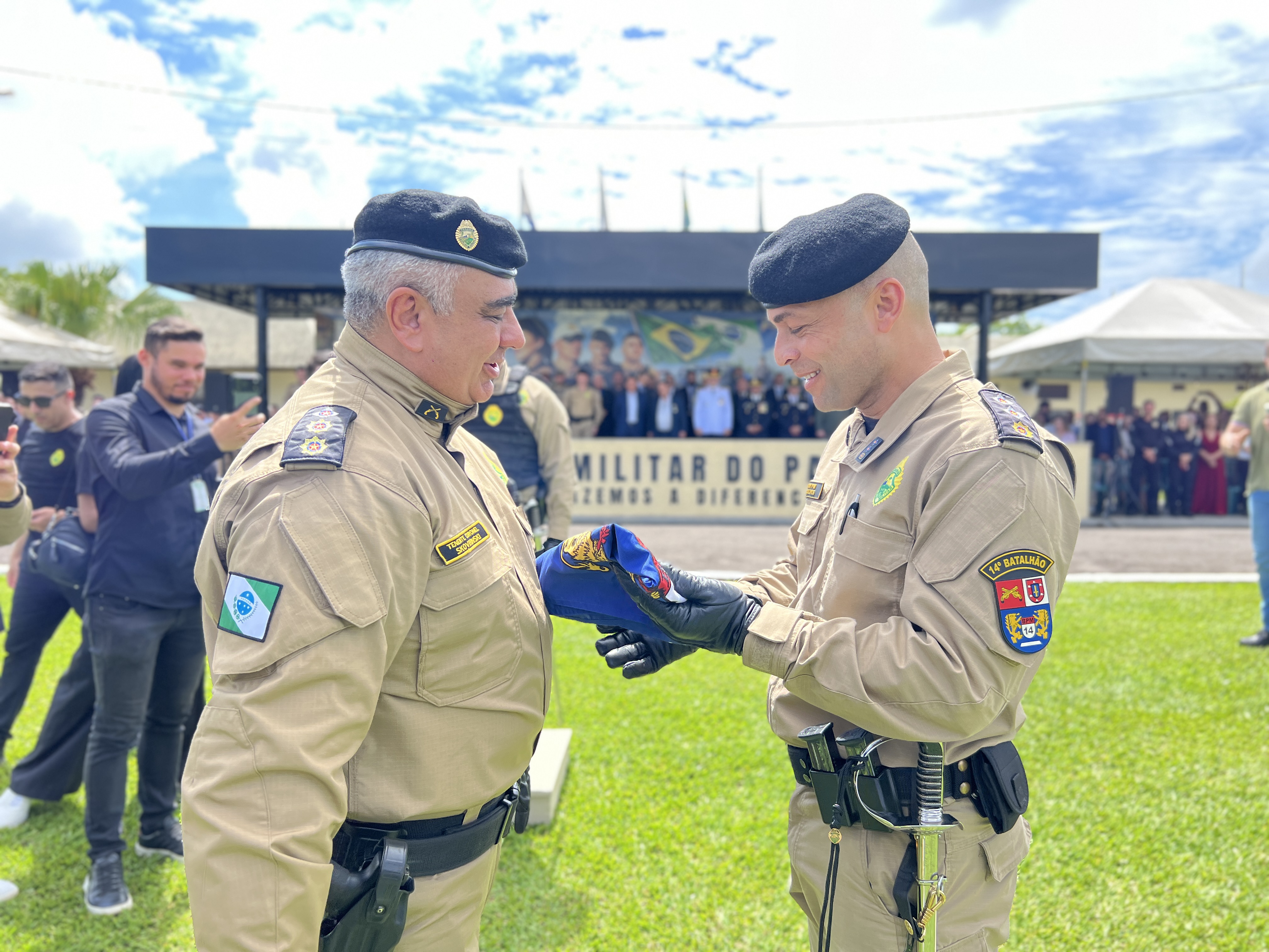 Em seguida, ocorreu a cerimônia oficial de entrega do comando, na qual o tenente-coronel Skovronski transmitiu ao major Eliseu Gonçalves as responsabilidades de liderança da unidade. O ato consolidou a passagem de comando conforme as tradições da Polícia Militar do Paraná e simbolizou o início de um novo ciclo para o batalhão.