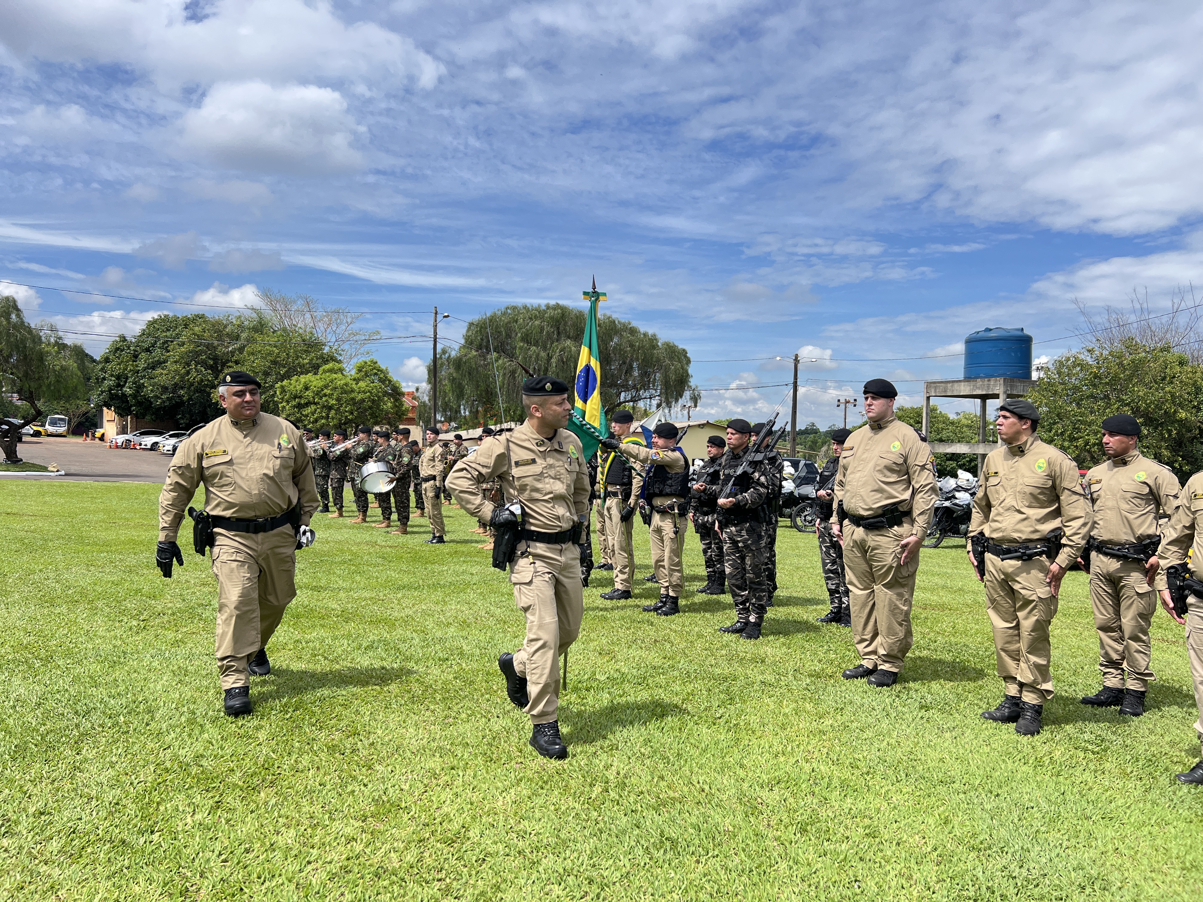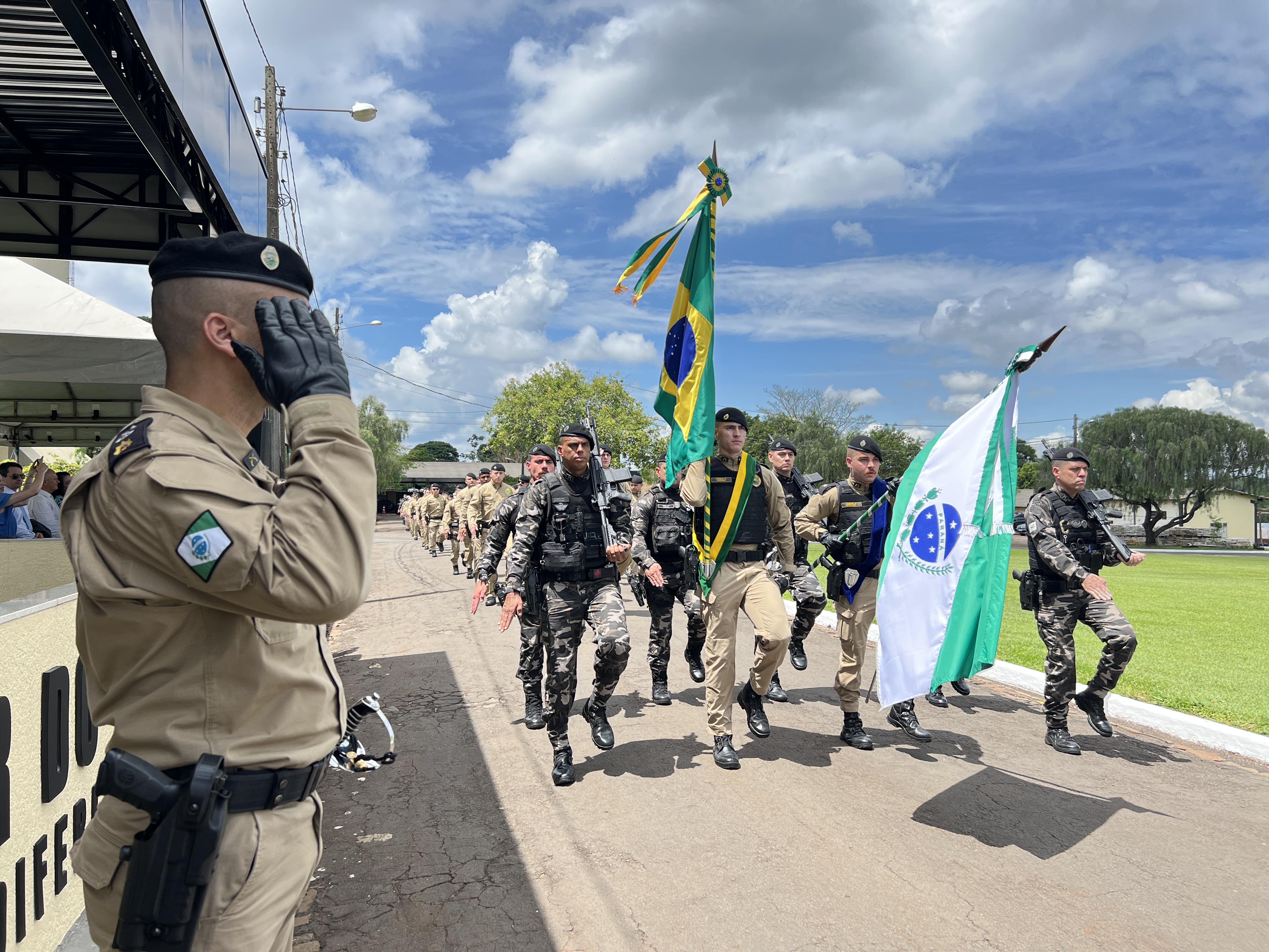 No desfile, passaram diante das autoridades os efetivos das companhias operacionais, das unidades especializadas, do Pelotão de Trânsito, do Pelotão de Choque, das equipes da Rocam e do Pelotão Motorizado. A apresentação evidenciou o preparo e o profissionalismo dos policiais que atuam diariamente na segurança da população de Foz do Iguaçu e região.