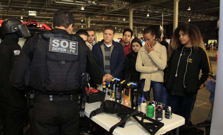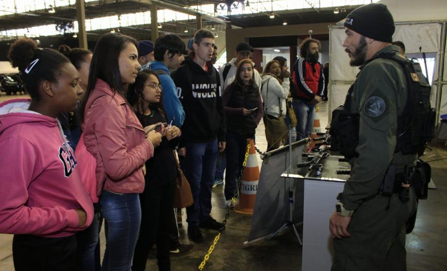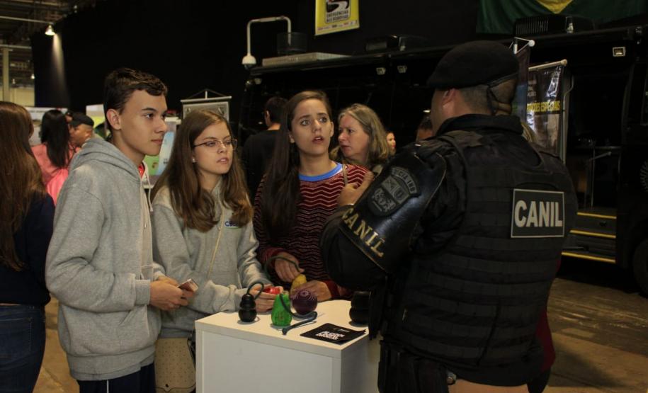 Ao longo de terça-feira o Centro de Eventos ficou repleto de estudantes que visitaram os estandes do Batalhão de Polícia Militar de Operações Aéreas (BPMOA), do Batalhão de Operações Especiais (BOPE) e do Batalhão de Polícia Ambiental Força Verde (BPAmb-FV). Um pelotão de Cavalaria do 5º batalhão (Londrina) levou miniponeis ao Centro de Exposições, e houve ainda a presença de uma equipe do Canil. O Corpo de Bombeiros também preparou atrações para as turmas com equipes do Siate e de combate à incêndio.