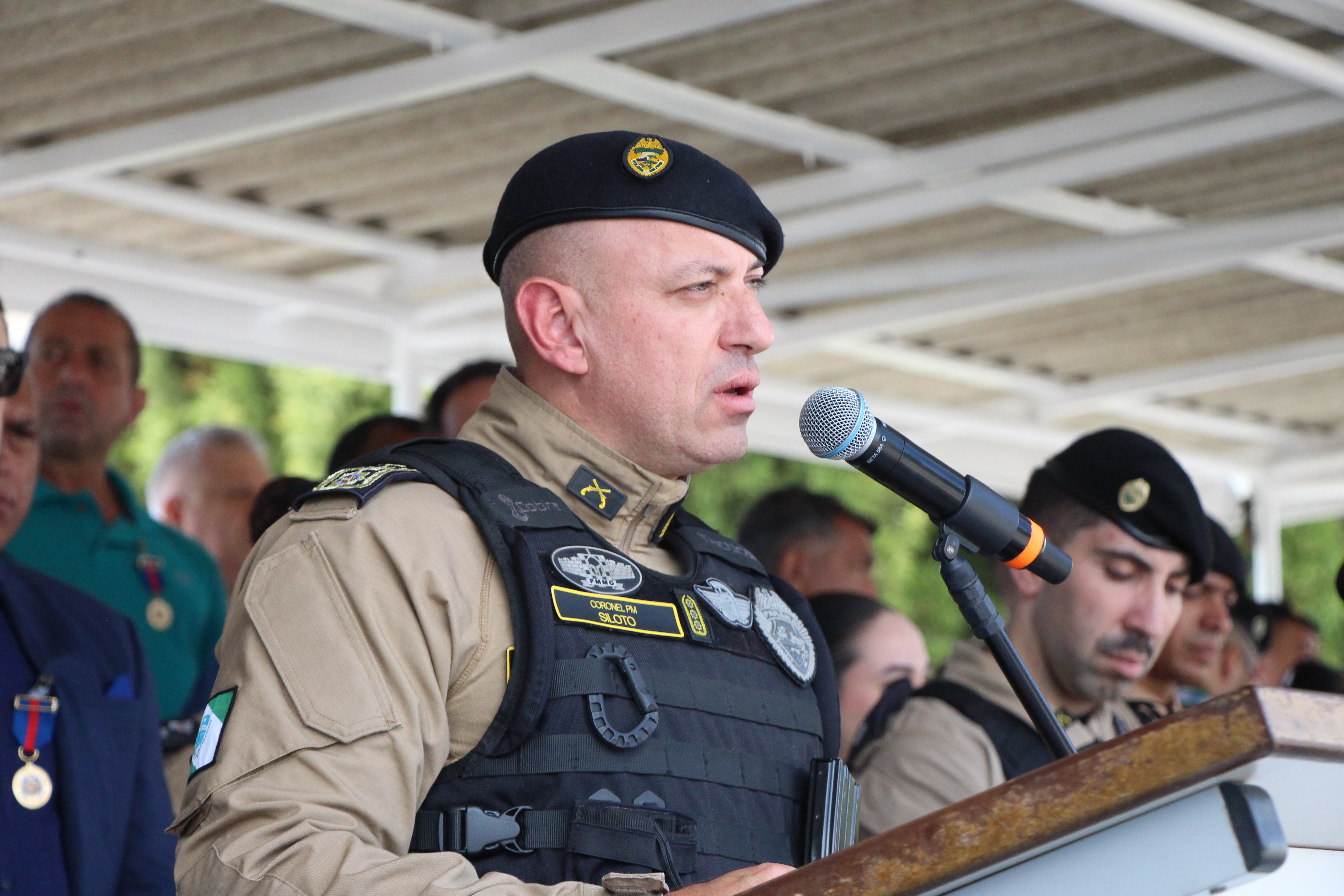 A solenidade ainda reservou espaço para o reconhecimento de profissionais que contribuíram para o desenvolvimento educacional da segurança pública. Foram entregues medalhas de mérito de ensino a instrutores, colaboradores e personalidades que se destacaram na difusão de conhecimento e no aperfeiçoamento das técnicas operacionais, simbolizando a gratidão da APMG pelo empenho de militares e civis que, por meio da docência, ajudaram a consolidar a reputação de excelência que a casa de ensino ostenta nacionalmente. Uma salva de 55 tiros e o tradicional desfile militar da tropa também fizeram demonstraram à relevância da data para a corporação.