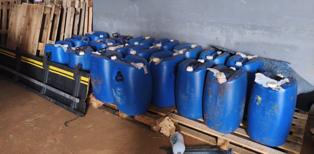 No interior do barracão foram encontrados 19 galões de 50 litros cada, totalizando 950 litros de substância com odor e características semelhantes à gasolina. O abordado informou que o combustível seria oriundo do Paraguai. Também foi localizada uma caminhonete Ford F-4.000, de cor amarela, com fundo falso, vestígios de substância análoga à maconha e rádio comunicador instalado.