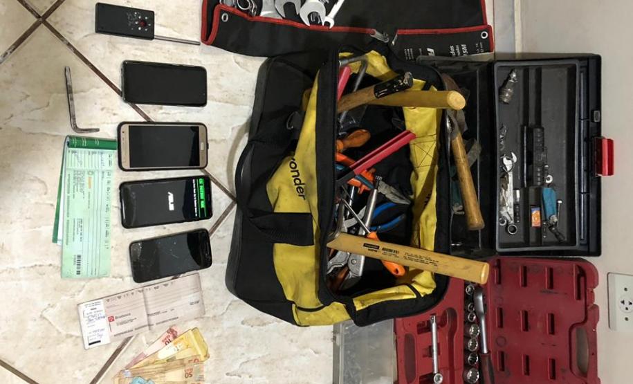 Nesse momento, foi solicitado o apoio de outras equipes da PM e da polícia civil. Posteriormente, um automóvel VW/Saveiro começou a escoltar um caminhão trator sem carga, agindo de maneira suspeita, e que, ao ser abordado, levou a serem apreendidos R$ 1.869,00, além de diversas ferramentas utilizadas para realizar furtos.