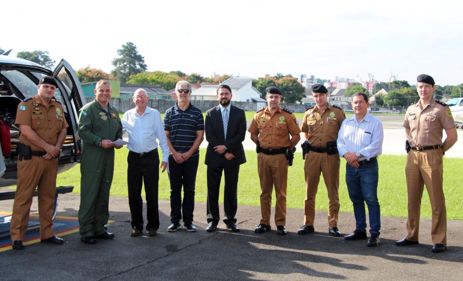 O Batalhão de Polícia Militar de Operações Aéreas (BPMOA) recebeu a visita de uma comitiva da Academia de Letras dos Militares Estaduais do Paraná (ALMEPAR) na tarde desta sexta-feira (26/04). Ao conhecer a estrutura, parte do plantel de aeronaves e equipamentos utilizados nas missões da unidade, o grupo fez a entrega do pedido para que o nome histórico da unidade seja do major Miguel Balbino Blasi, que seria o primeiro aviador da Polícia Militar.