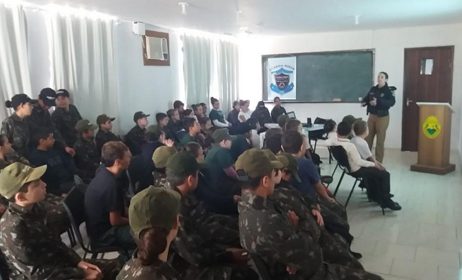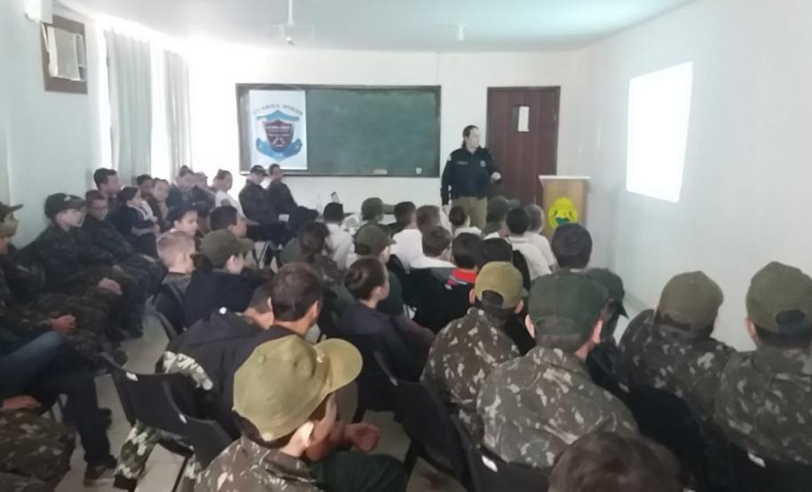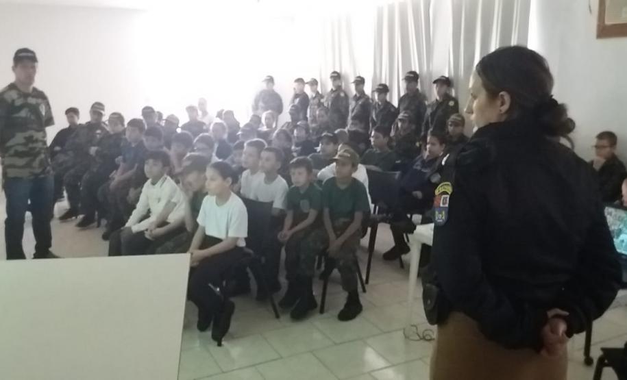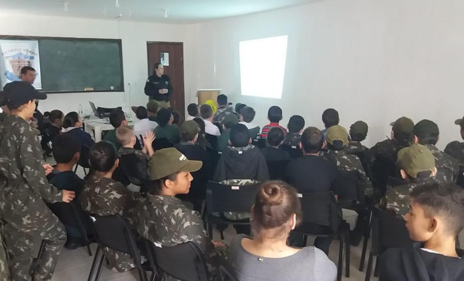 Alunos do projeto Guarda Mirim de Pontal do Paraná (PR) participam de palestra com policiais militares 08/08/2018 - 17:40