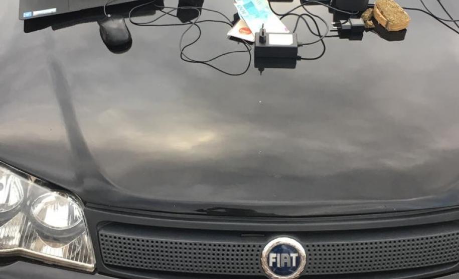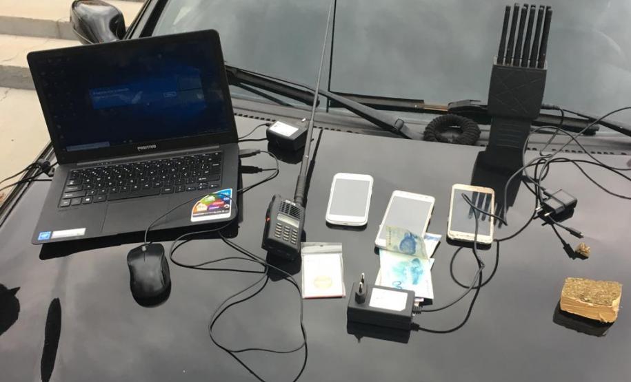 Na fiscalização, os policiais encontraram um aparelho que bloqueia o sinal de rastreadores, e os rapazes não souberam explicar porque ele estava ali. Três celulares e um notebook também foram encontrados dentro do carro.