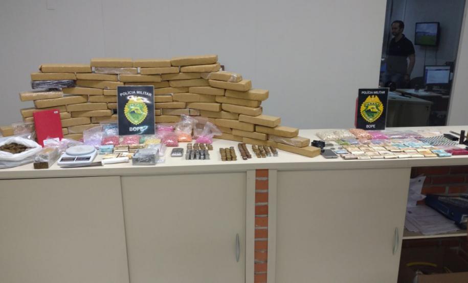 Equipes do Batalhão de Operações Especiais (BOPE) apreenderam 44,6 quilos de maconha, 4,8 quilos de ecstasy, 949 pontos de LSD, 71 gramas de MD, R$ 36 mil em dinheiro, três armas de fogo e três veículos durante ações distintas na Capital do estado e Região Metropolitana de Curitiba (RMC). Nas abordagens, que ocorreram na noite de sexta-feira (09/02) e madrugada de sábado (10/02), foram encaminhadas seis pessoas, dentre elas um adolescente.