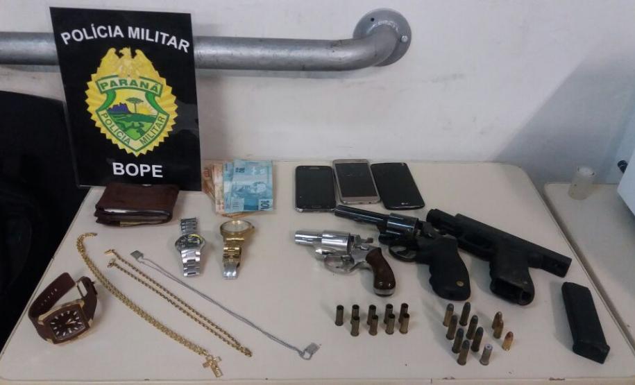Em Fazenda Rio Grande, os policiais foram informados de que homens em um carro Gol, de cor preta, haviam atirado contra uma pessoa em um veículo Fiesta. Dois dos envolvidos estavam sendo monitorados por tornozeleira eletrônica e as equipes deslocaram-se até a Rua Professora Augusta Ribas, no bairro Tatuquara, onde estava indicando a localização do rastreador. Na casa foram abordados os três suspeitos, sendo localizados dois revólveres e uma pistola, além do veículo usado no crime.