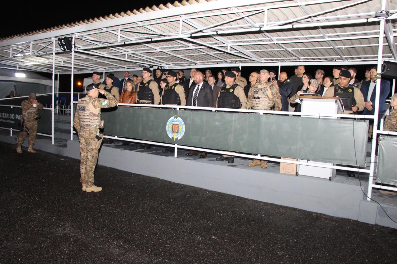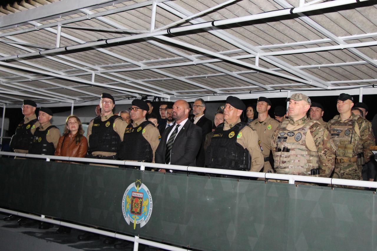 A cerimônia contou com a presença do Comandante-Geral da PMPR, coronel Jefferson Silva; do Subcomandante-Geral, coronel Paulo Henrique Semmer; do Chefe do Estado-Maior, coronel Paulo Roberto Lima; do comandante do Comando de Missões Especiais (CME), coronel Paulo Renato Aparecido Siloto e do tenente-coronel Cezar Hoinatski, comandante do BOPE, que recepcionaram o Secretário da Segurança Pública do Paraná, coronel veterano Hudson Leôncio Teixeira, e demais autoridades civis e militares.