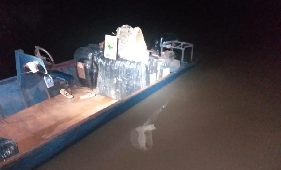 Na outra ocorrência, também em Guaíra (PR), na terça-feira (21/05), em ação integrada do BPFron com o Pelotão de Corpo de Operações de Busca e Repressão Aquática (C.O.B.R.A.) e pelo Núcleo Especial de Polícia Marítima (NEPOM), um barco carregado com 500 pacotes de cigarros contrabandeados e diversos simulacros de armas de fogo foram apreendidos. Em terra, um veículo, supostamente usado no transporte desse tipo de mercadoria ilícita, também foi confiscado.