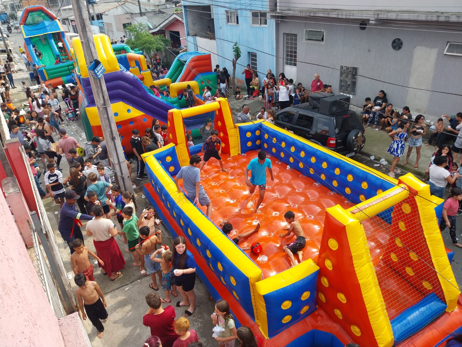 Com início às 9h, o evento ofereceu uma série de atividades recreativas como brinquedos infláveis, cama elástica e outras atrações. Além disso, não faltaram brindes típicos das festas infantis: cachorro-quente, refrigerante, pipoca, algodão doce e muitos doces foram distribuídos gratuitamente.