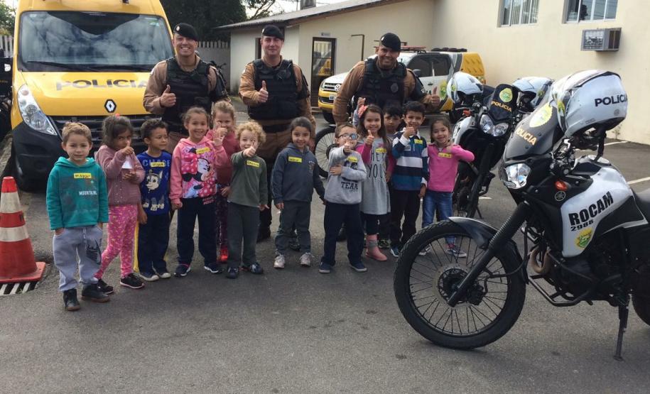 A criançada interagiu com os policiais militares da Rondas Ostensivas com Apoio de Motocicletas (ROCAM) e entrou nas viaturas de Radiopatrulha (RPA), no módulo móvel e no ônibus de monitoramento. Depois foi servido um lanche para recuperar a energia dos pequenos. Muitos puderam tirar fotos com fardas infantis para registrar a visita especial.