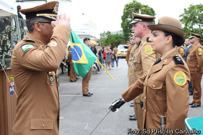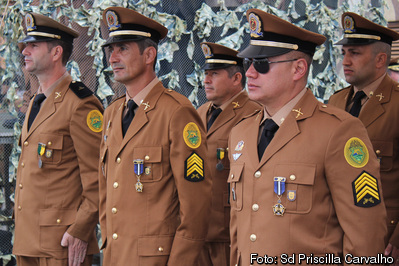 PRESENÇAS – Estiveram no evento o Subcomandante-Geral da PM, coronel Arildo Luis Dias; o Comandante do 20º Batalhão de Infantaria Blindada (20º BIB), coronel Gerson Rolim da Silva; o Comandante do 6º Comando Regional da PM (6º CRPM), coronel Valterlei Mattos de Souza; o Chefe da Diretoria de Tecnologia e Qualidade (DDTQ), coronel Eudes Camilo da Cruz; o Presidente da Associação dos Oficiais Policiais e Bombeiros do Estado do Paraná (Assofepar), coronel Izaías de Farias; o Comandante do 13º Batalhão da PM e que representou o Comandante do 1º CRPM, tenente-coronel Carlos Alberto Rodrigues Assunção, o Chefe do da 5ª Seção do Estado-Maior, tenente-coronel Vanderley Rothenburg, além de oficiais e praças da PM, homenageados e familiares dos policiais.