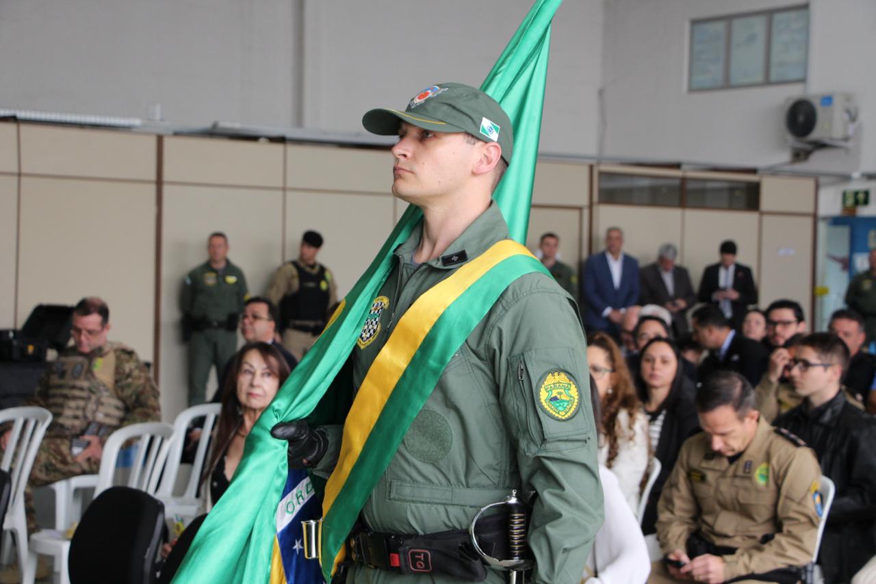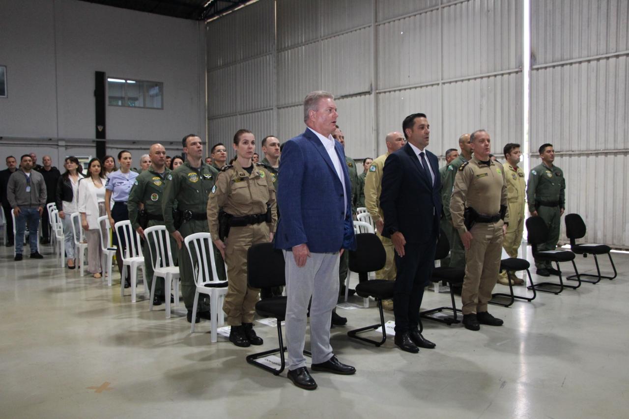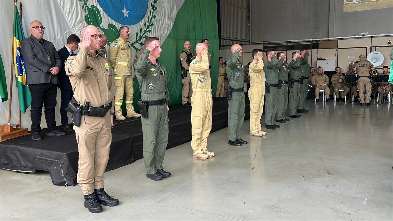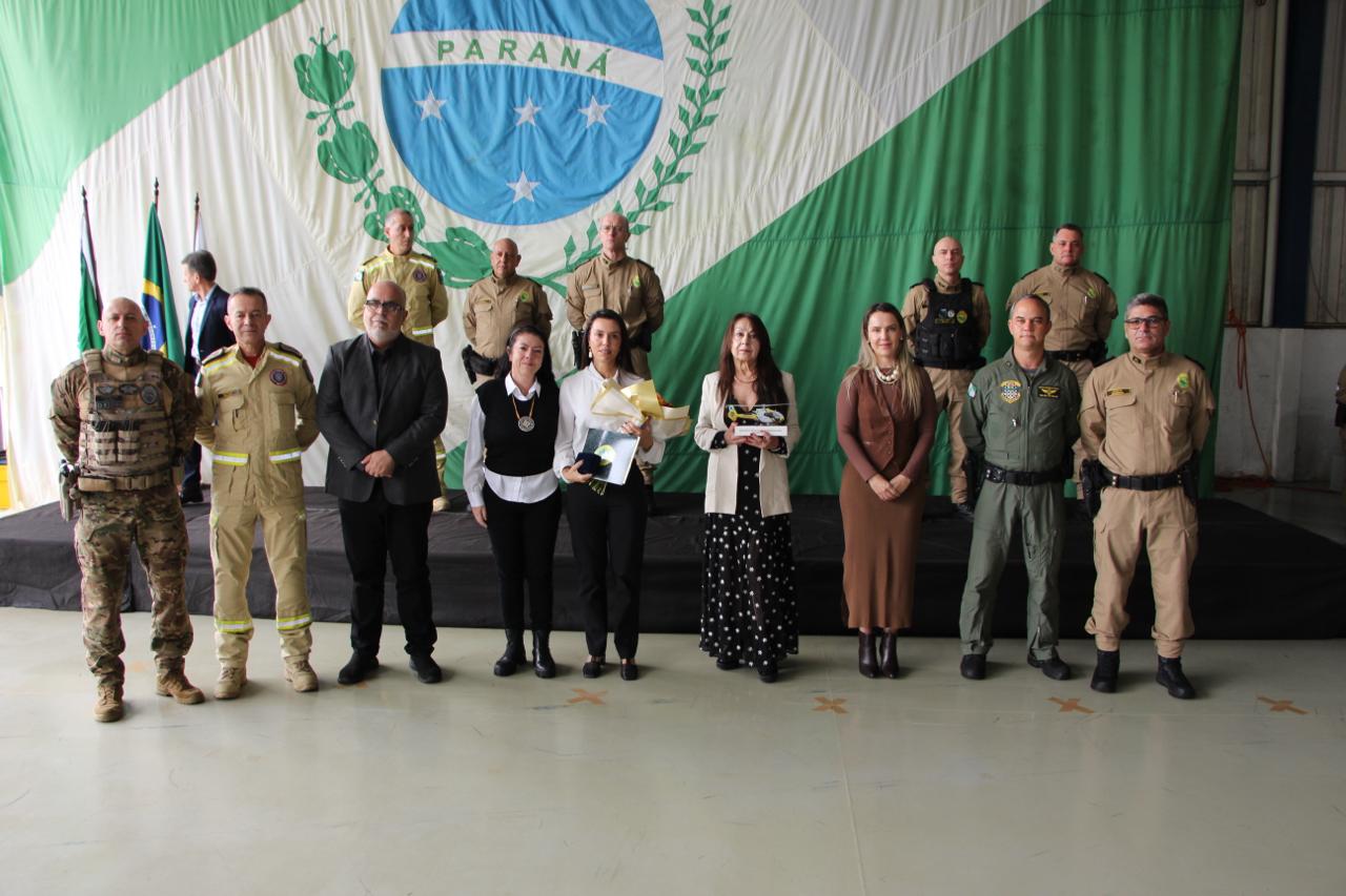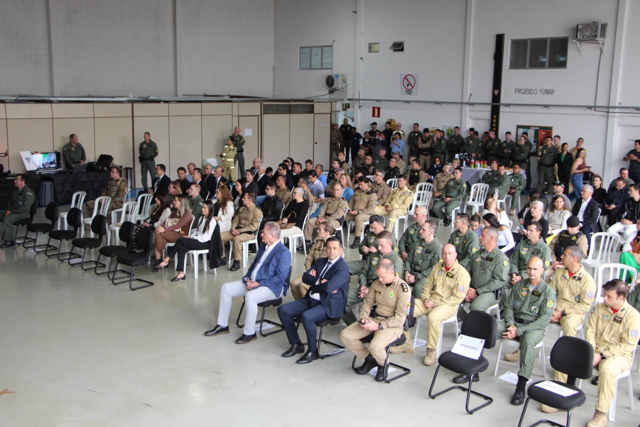 PRESENÇAS – Além das autoridades já nominadas, prestigiaram o evento também o Comandante-Geral do Corpo de Bombeiros Militar do Paraná, coronel Antonio Geraldo Hiller Lino; o Subcomandante-Geral do Corpo de Bombeiros Militar do Paraná, coronel Jonas Emmanuel Benghi Pinto; o Comandante do Comando de Missões Especiais, coronel Paulo Renato Aparecido Siloto; o Diretor de Educação Corporativa da PMPR, coronel Marco Antônio da Silva; o Comandante do 1º CRPM, coronel Marcelo Roke Fávero; o Presidente do Clube dos Oficiais, coronel veterano Izaias de Farias; o Presidente da ASSOFEPAR, coronel veterano Luiz Rodrigo Larson Carstens; o Presidente da AVM, coronel veterano João Jorge dos Santos Júnior; o Diretor de Políticas Públicas da SESP, coronel veterano Saulo de Tarso Sanson Silva; o Comandante do 33º BPM, tenente-coronel Pedro Paulo Porto de Sampaio; o Comandante do Batalhão de Polícia Rodoviária, tenente-coronel Gustavo Dalledone Zancan; o Comandante do 17º BPM, tenente-coronel Giuliano de Freitas; o Diretor de Gestão em Segurança da SESP, tenente-coronel veterano Roberto Sampaio Araújo; o ex-Comandante do BPMOA, tenente-coronel Orlando Arthur da Costa; representando o Comandante do CINDACTA, tenente-coronel Aviador, Fabiano Vargas Wojcik; o delegado e comandante do GOA, Renato Coelho de Jesus; o chefe do Núcleo de Operações Aéreas da PRF, Fabiano Nicolete; o Diretor-Geral da Secretaria de Estado da Saúde, César Augusto Neves Luiz; o representante da Helisul, Humberto Biegus; o representante do IAT, Alexandre Paim; e a diretora de Urgência e Emergência da Secretaria Municipal de Saúde de Curitiba, Katiuscia Webber.