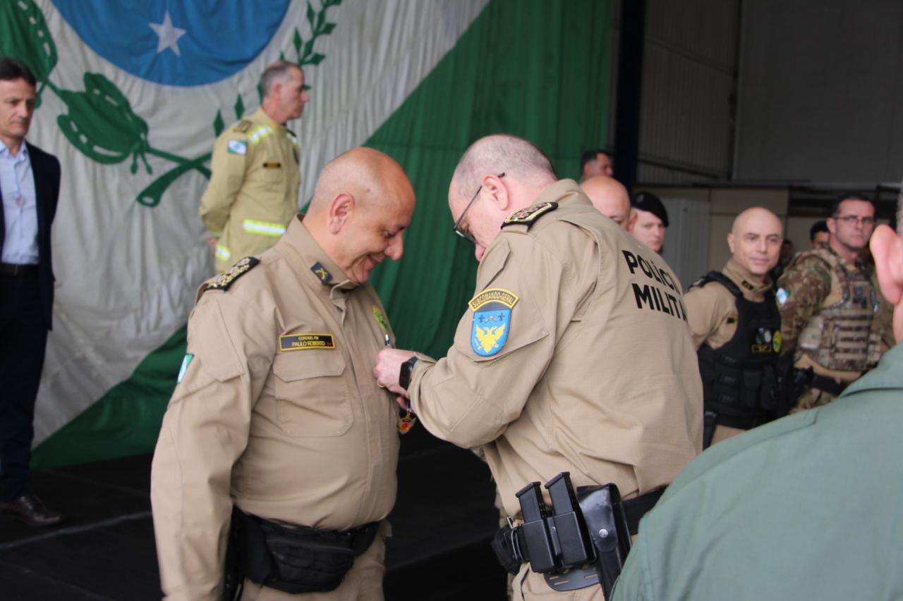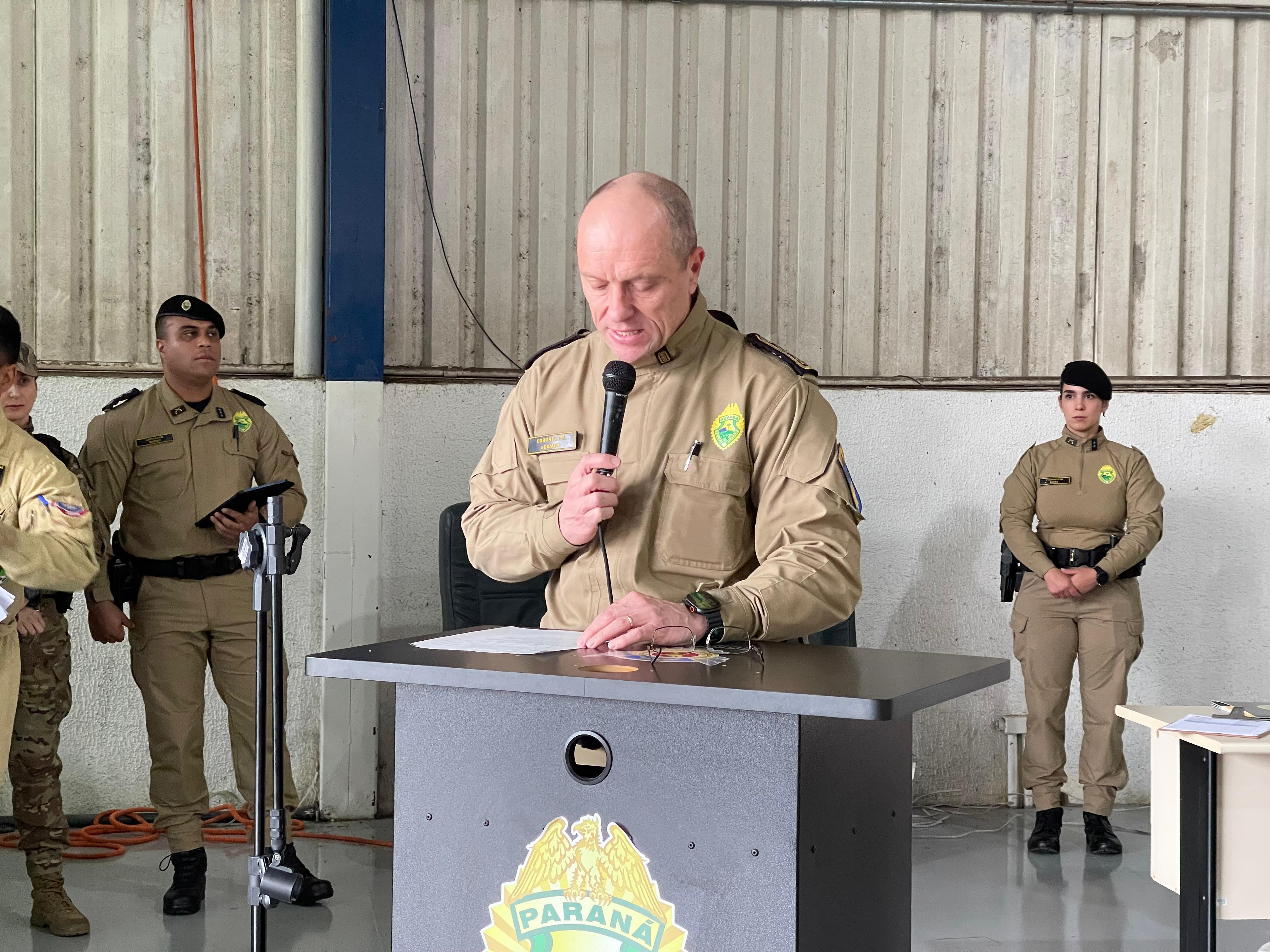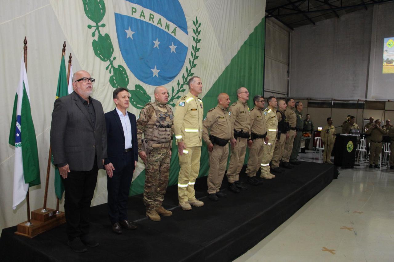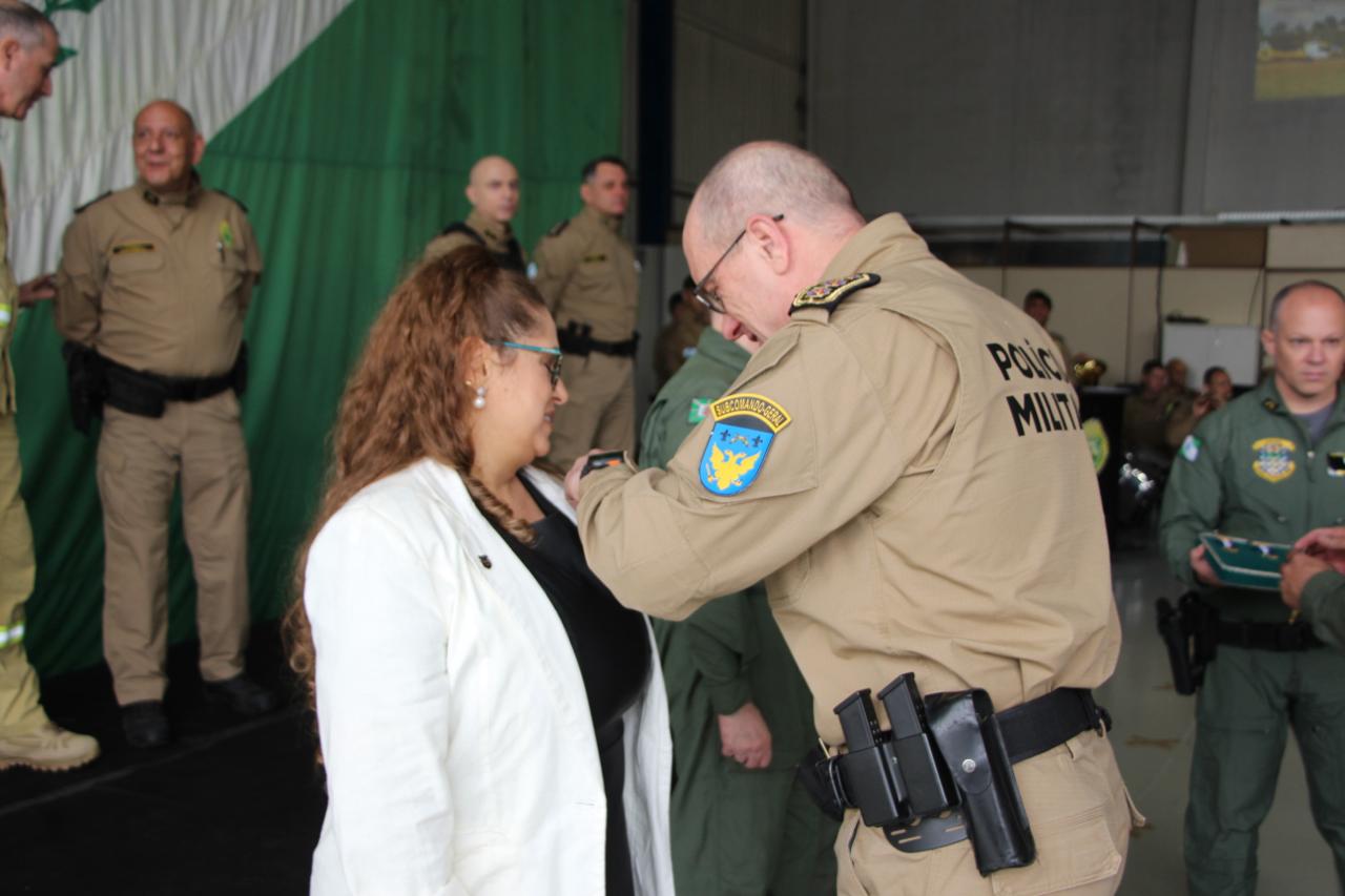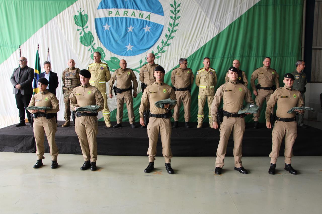 PRESENÇAS – Além das autoridades já nominadas, prestigiaram o evento também o Comandante-Geral do Corpo de Bombeiros Militar do Paraná, coronel Antonio Geraldo Hiller Lino; o Subcomandante-Geral do Corpo de Bombeiros Militar do Paraná, coronel Jonas Emmanuel Benghi Pinto; o Comandante do Comando de Missões Especiais, coronel Paulo Renato Aparecido Siloto; o Diretor de Educação Corporativa da PMPR, coronel Marco Antônio da Silva; o Comandante do 1º CRPM, coronel Marcelo Roke Fávero; o Presidente do Clube dos Oficiais, coronel veterano Izaias de Farias; o Presidente da ASSOFEPAR, coronel veterano Luiz Rodrigo Larson Carstens; o Presidente da AVM, coronel veterano João Jorge dos Santos Júnior; o Diretor de Políticas Públicas da SESP, coronel veterano Saulo de Tarso Sanson Silva; o Comandante do 33º BPM, tenente-coronel Pedro Paulo Porto de Sampaio; o Comandante do Batalhão de Polícia Rodoviária, tenente-coronel Gustavo Dalledone Zancan; o Comandante do 17º BPM, tenente-coronel Giuliano de Freitas; o Diretor de Gestão em Segurança da SESP, tenente-coronel veterano Roberto Sampaio Araújo; o ex-Comandante do BPMOA, tenente-coronel Orlando Arthur da Costa; representando o Comandante do CINDACTA, tenente-coronel Aviador, Fabiano Vargas Wojcik; o delegado e comandante do GOA, Renato Coelho de Jesus; o chefe do Núcleo de Operações Aéreas da PRF, Fabiano Nicolete; o Diretor-Geral da Secretaria de Estado da Saúde, César Augusto Neves Luiz; o representante da Helisul, Humberto Biegus; o representante do IAT, Alexandre Paim; e a diretora de Urgência e Emergência da Secretaria Municipal de Saúde de Curitiba, Katiuscia Webber.