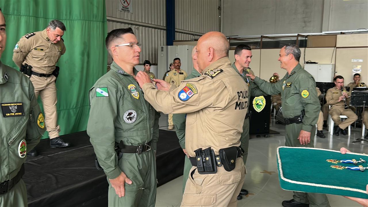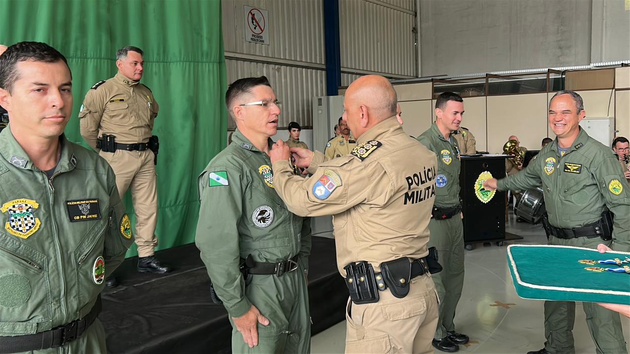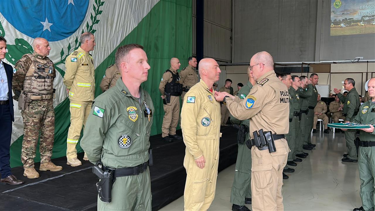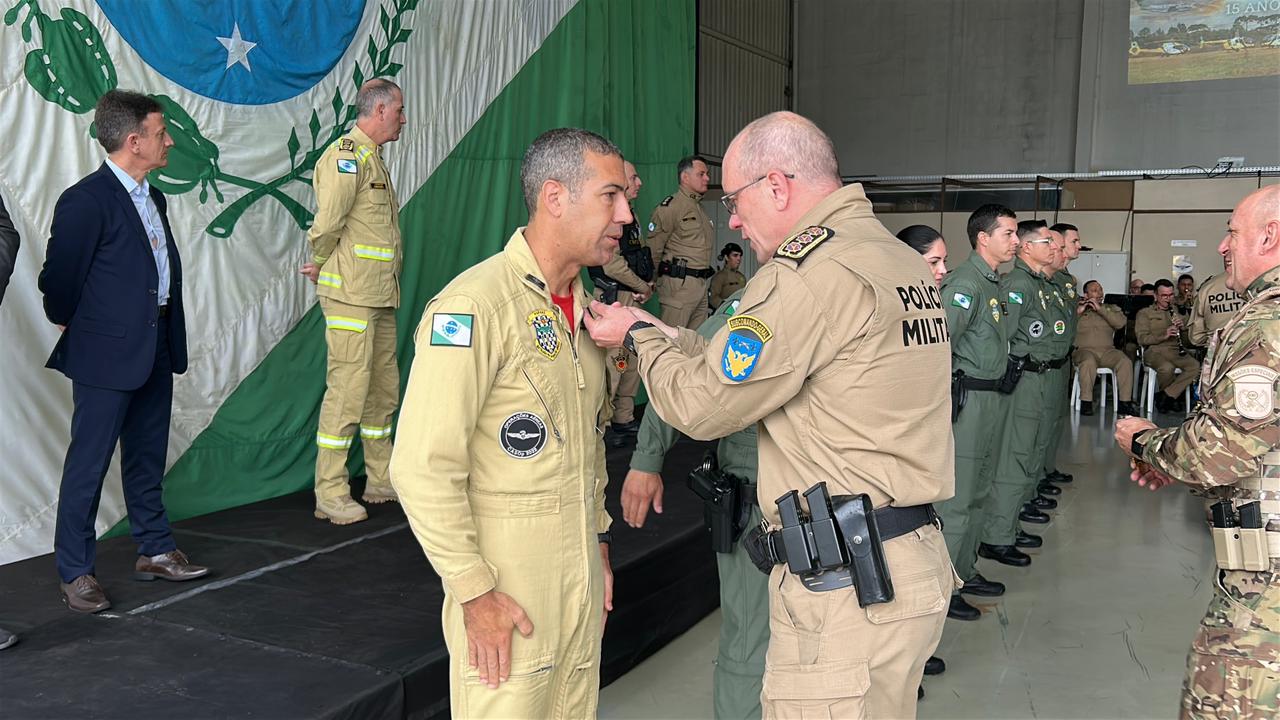 Durante a solenidade, foram entregues os trajes de voo aos novos integrantes do Batalhão, que iniciarão a formação de piloto de aeronaves, simbolizando o ingresso oficial na aviação de segurança pública e o compromisso com a preservação da vida. Também foram concedidas medalhas de mérito a militares e civis que contribuíram significativamente para o desenvolvimento da aviação de segurança pública no Paraná. Além disso, foi prestada uma homenagem póstuma ao enfermeiro Paulo Henrique Markwardt, integrante do SAMU e colaborador do BPMOA, reconhecido pelo legado de dedicação e humanidade deixado à corporação