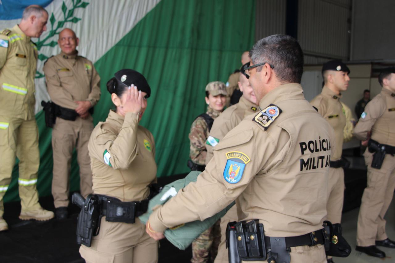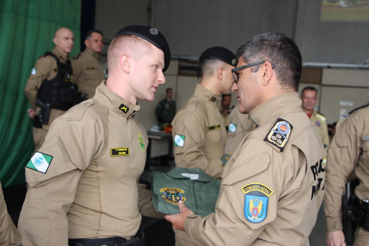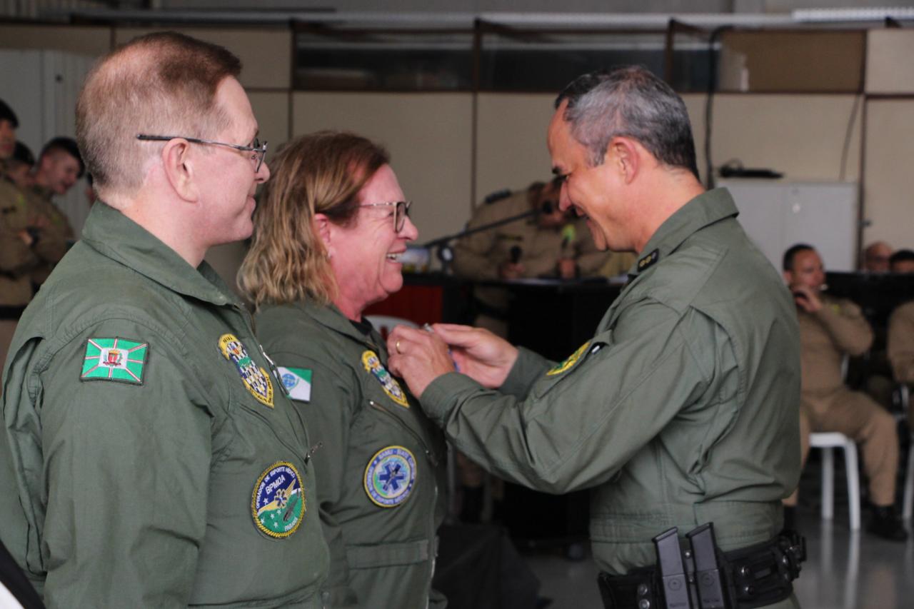 Durante a solenidade, foram entregues os trajes de voo aos novos integrantes do Batalhão, que iniciarão a formação de piloto de aeronaves, simbolizando o ingresso oficial na aviação de segurança pública e o compromisso com a preservação da vida. Também foram concedidas medalhas de mérito a militares e civis que contribuíram significativamente para o desenvolvimento da aviação de segurança pública no Paraná. Além disso, foi prestada uma homenagem póstuma ao enfermeiro Paulo Henrique Markwardt, integrante do SAMU e colaborador do BPMOA, reconhecido pelo legado de dedicação e humanidade deixado à corporação