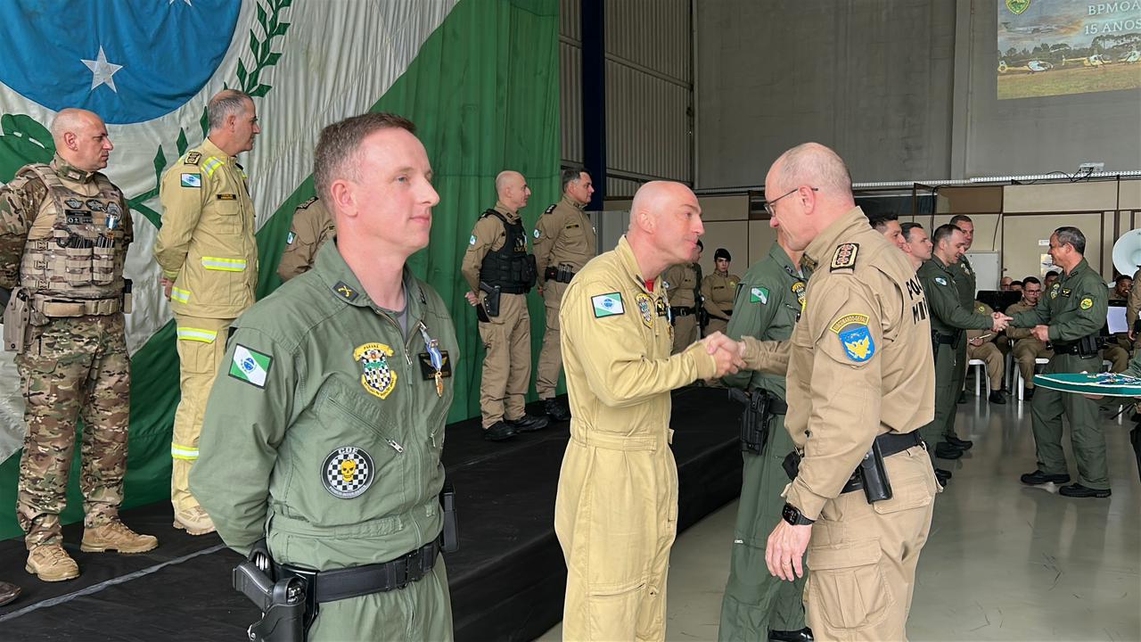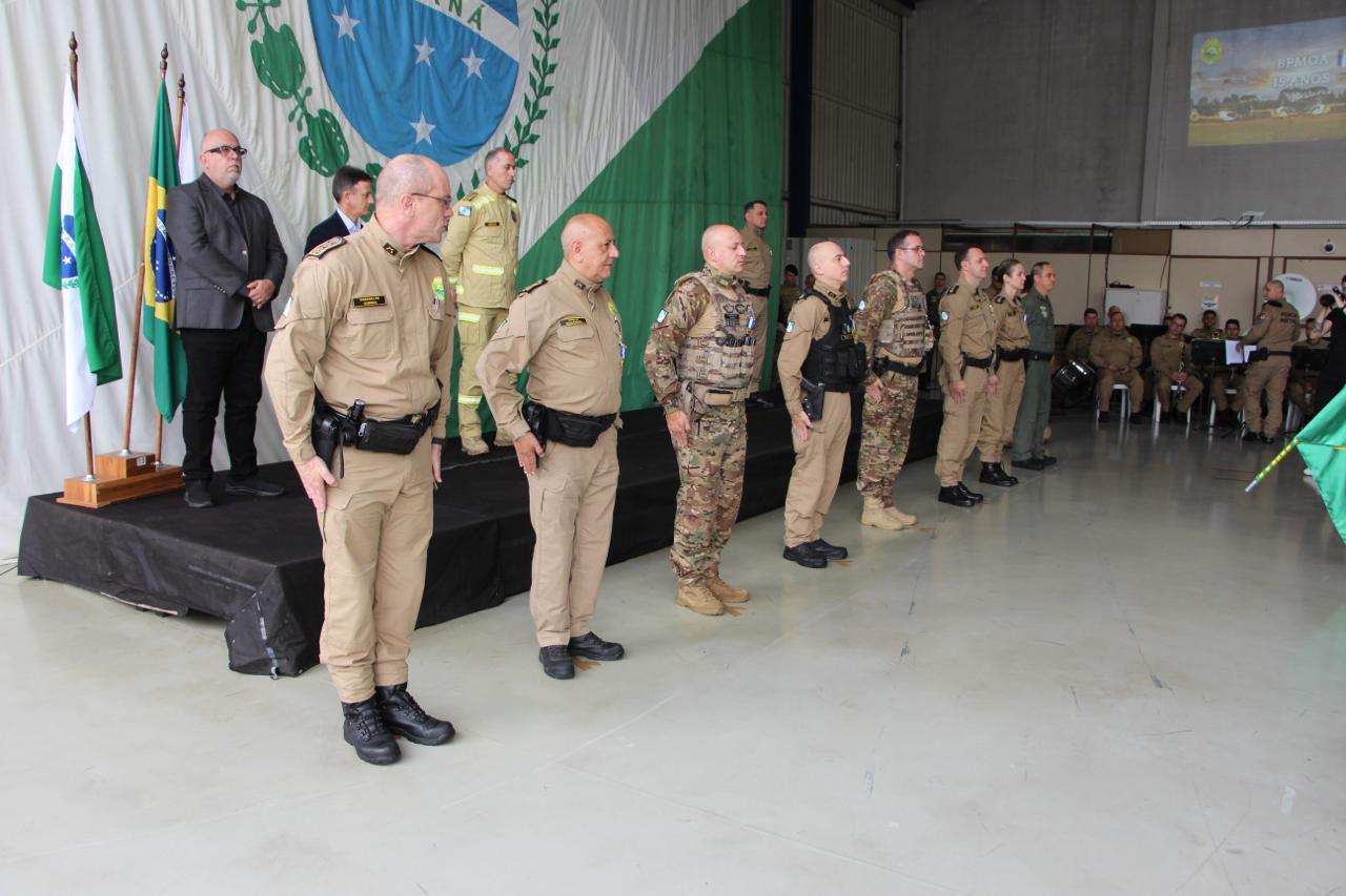 O Batalhão de Polícia Militar de Operações Aéreas (BPMOA) da Polícia Militar do Paraná (PMPR) celebrou, nesta segunda-feira (27), seus 15 anos de fundação, em solenidade que marcou a consolidação da unidade como referência nacional em segurança pública e salvamento de vidas. A cerimônia, realizada em Curitiba, contou com a presença do Comandante-Geral da PMPR, coronel Jefferson Silva, do Subcomandante-Geral, coronel Paulo Henrique Semmer, e do Chefe do Estado-Maior, coronel Paulo Roberto Lima e do Diretor-Geral da Secretaria de Estado da Segurança Pública (SESP), neste ato representando o Secretário, coronel Adilson Luiz Lucas Prusse. As autoridades foram recepcionadas pelo Comandante do BPMOA, tenente-coronel Andrey Müller Yark.