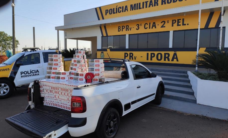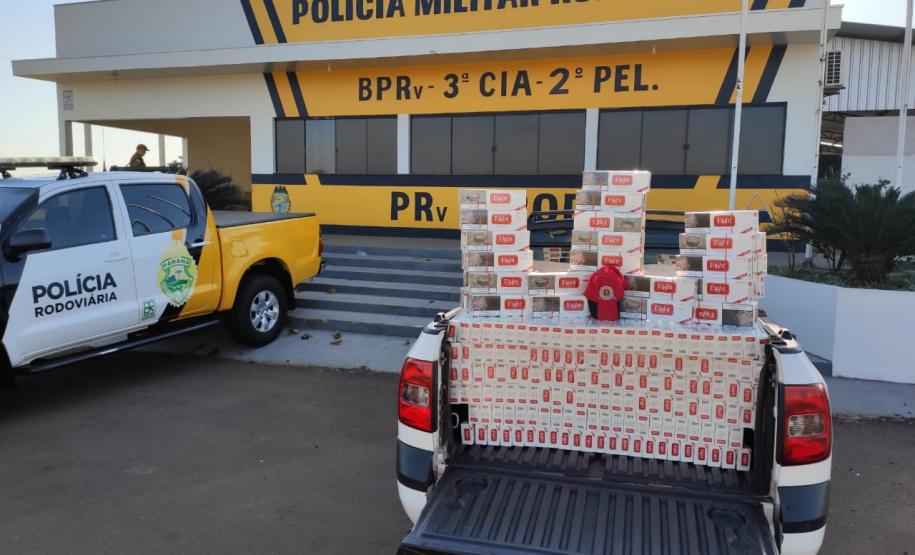 Mais de 20 mil maços de cigarros foram apreendidos por policiais militares do Batalhão de Polícia Rodoviária (BPRv). A ação policial aconteceu na terça-feira (25/06) no município de Perobal, no Noroeste do estado, e resultou na apreensão de uma VW/Saveiro. O motorista não foi localizado.