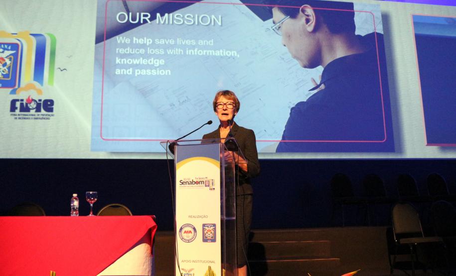 A palestra de abertura foi com a britânica Kathleen H. Almand, Vice-Presidente de pesquisa da Associação Nacional de Proteção contra Incêndios do Reino Unido. A explanação analisou principalmente o caso do Edifício Grenfell Tower, Londres, ocorrido em junho de 2017, que resultou em 71 mortes. Além dele, ela falou sobre outros casos e fez uma análise de como foi a atuação dos corpos de bombeiros e quais foram as ações posteriores. Ela citou, por exemplo, um caso da China (incluindo Shanghai) que resultou em 58 mortos.