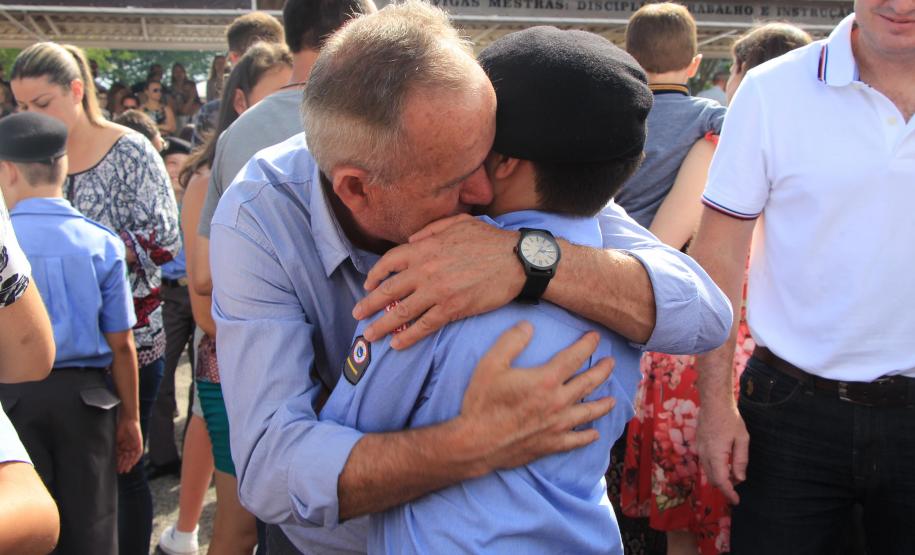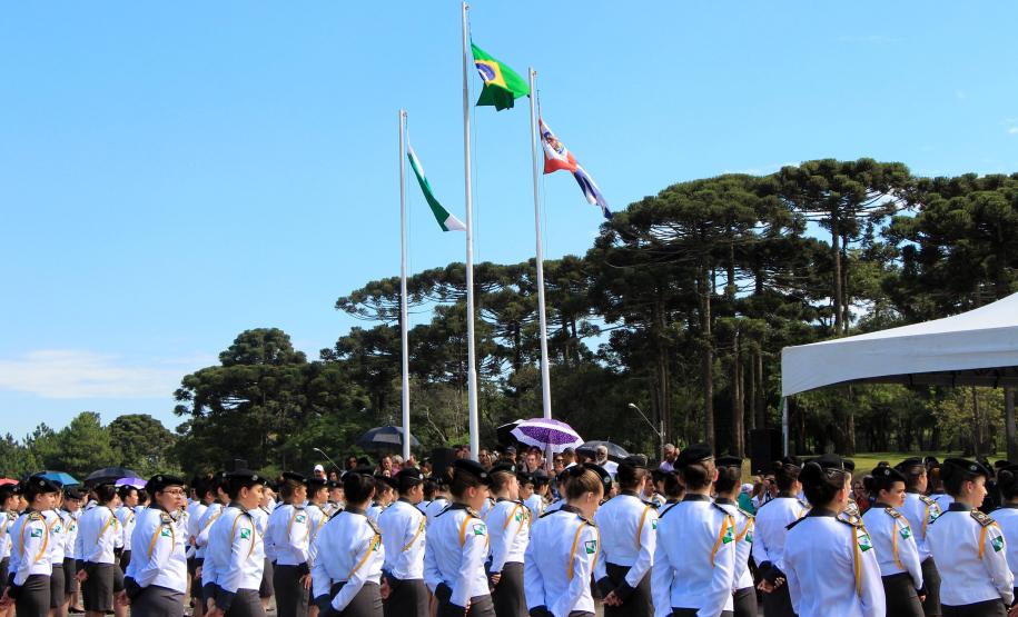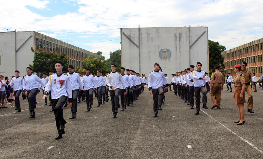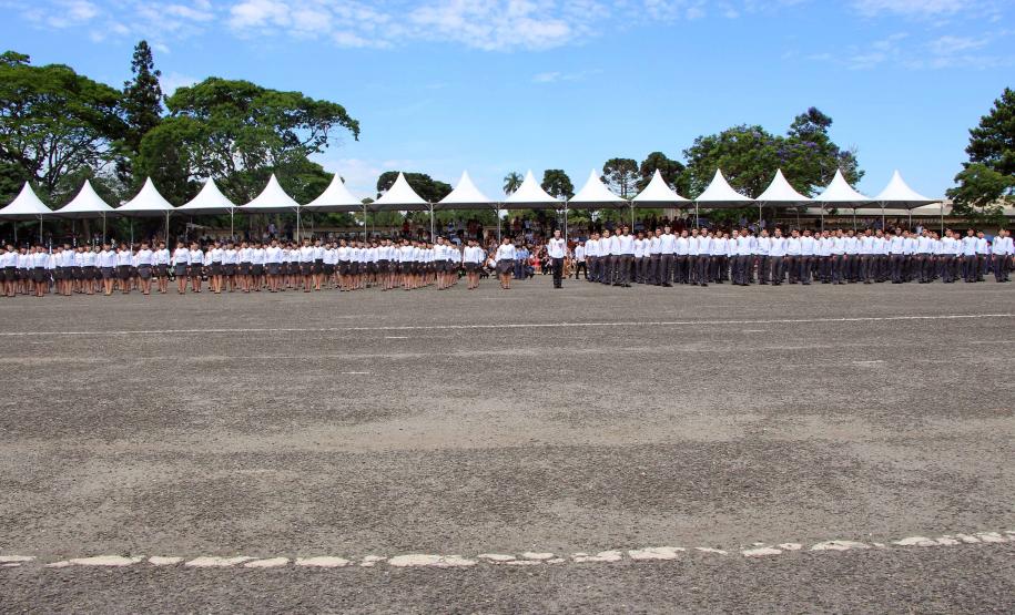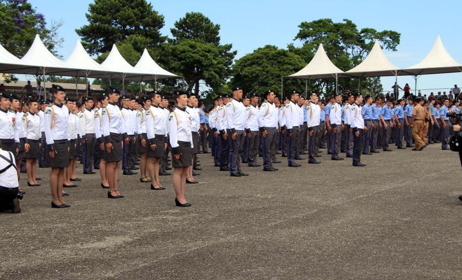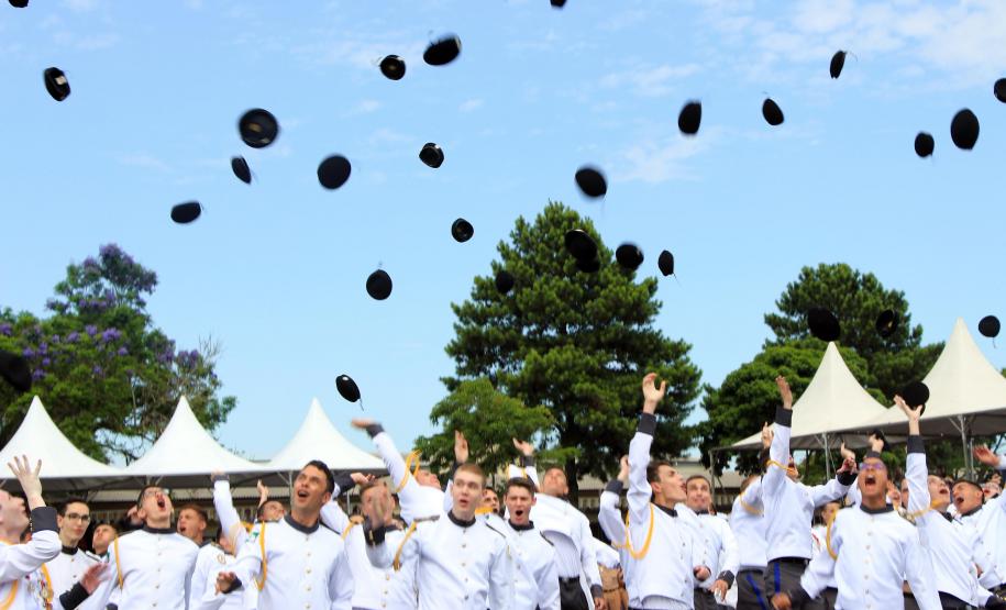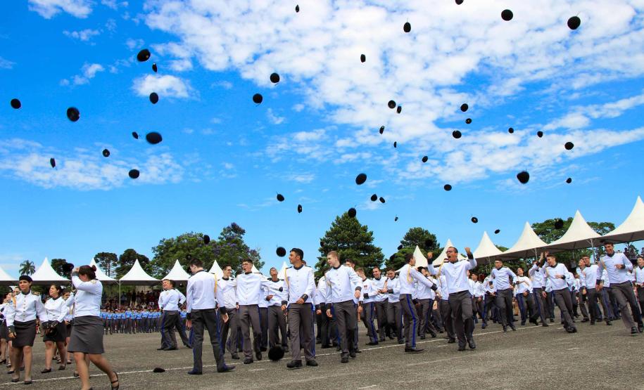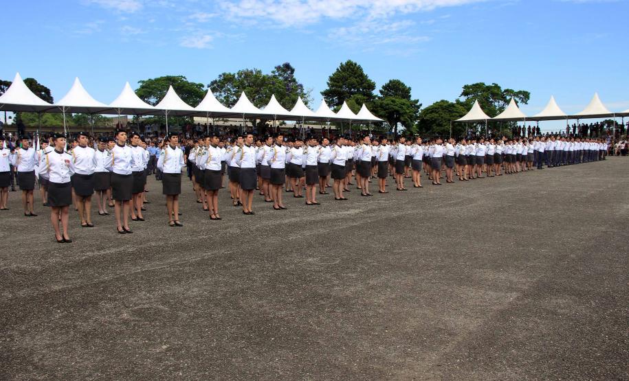 Os formandos do Ensino Médio e do Ensino Fundamental do Colégio da Polícia Militar (CPM) concluíram a etapa durante a solenidade de formatura na Academia Policial Militar do Guatupê (APMG) na manhã de sábado (15/12), em São José dos Pinhais. O evento coroou ainda os alunos que tiveram melhor desempenho escolar no ano com a medalha “Mérito Escolar” Coronel Felippe de Souza Miranda. Cerca de 5 mil pessoas participaram do evento.