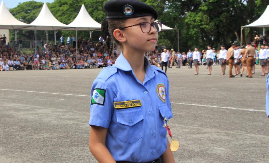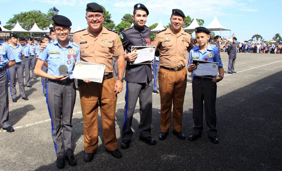 Durante a solenidade foram entregues 110 medalhas de foram entregues 110 medalhas de “Mérito Escolar” Coronel Felippe de Souza Miranda que obtiveram as melhores notas. A terceira colocação ficou com o aluno Pedro, do 6º ano do Ensino Fundamental, com nota 9,67. Em segundo lugar ficou o aluno José Gabriel de Oliveira, do 2º ano do Ensino Médio, com nota 9,7, e a primeira colocação ficou com a aluna Ana Beatriz de Farias, do 7º ano do Ensino Fundamental, com nota 9,76.