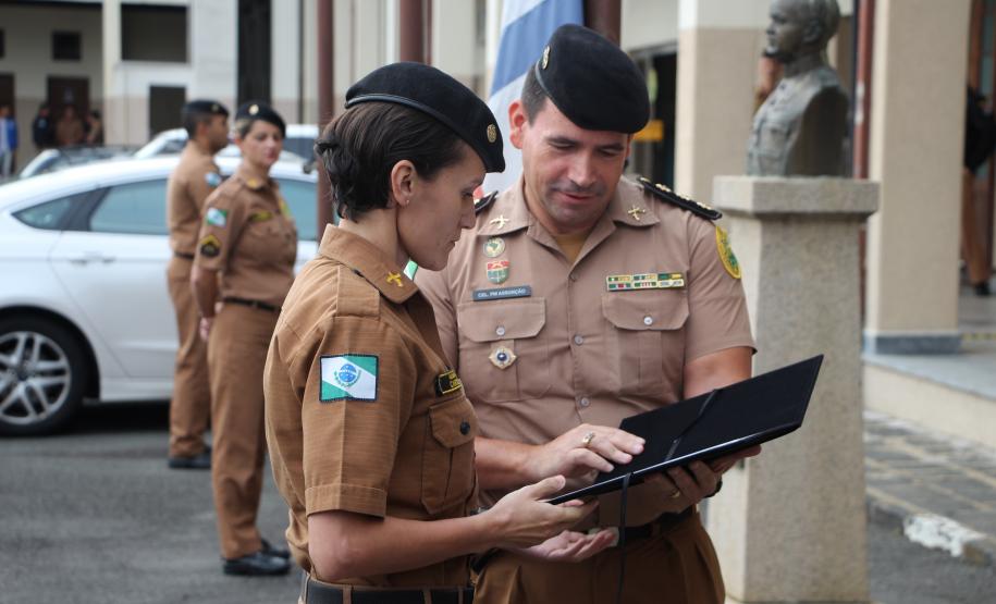 Presidida pelo Diretor da Diretoria de Desenvolvimento Tecnologia e Qualidade (DDTQ), Coronel Antônio Zanatta Neto, uma cerimônia, realizada na última quinta-feira (14/02), no pátio do Quartel do Comando Geral da Corporação, em Curitiba, homenageou a auxiliar da 4ª Seção do Estado Maior, soldado Caroline Alexandre.