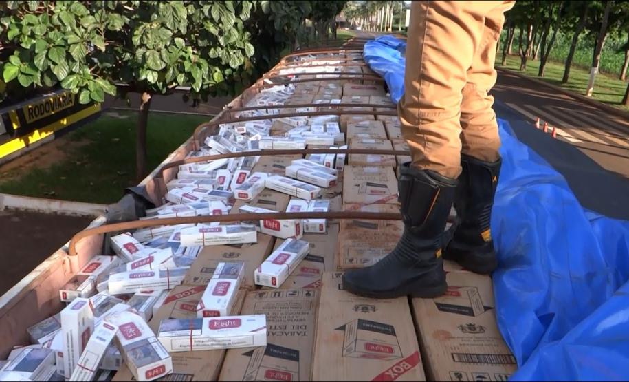 A equipe policial fez a abordagem ao caminhão na PR 488 e verificou que a carga era de sementes de girassol e chegou a liberar o motorista, porém, os policiais suspeitaram do comportamento do homem e fizeram outra vistoria, que culminou na localização de 600 caixas de cigarros de origem paraguaia.