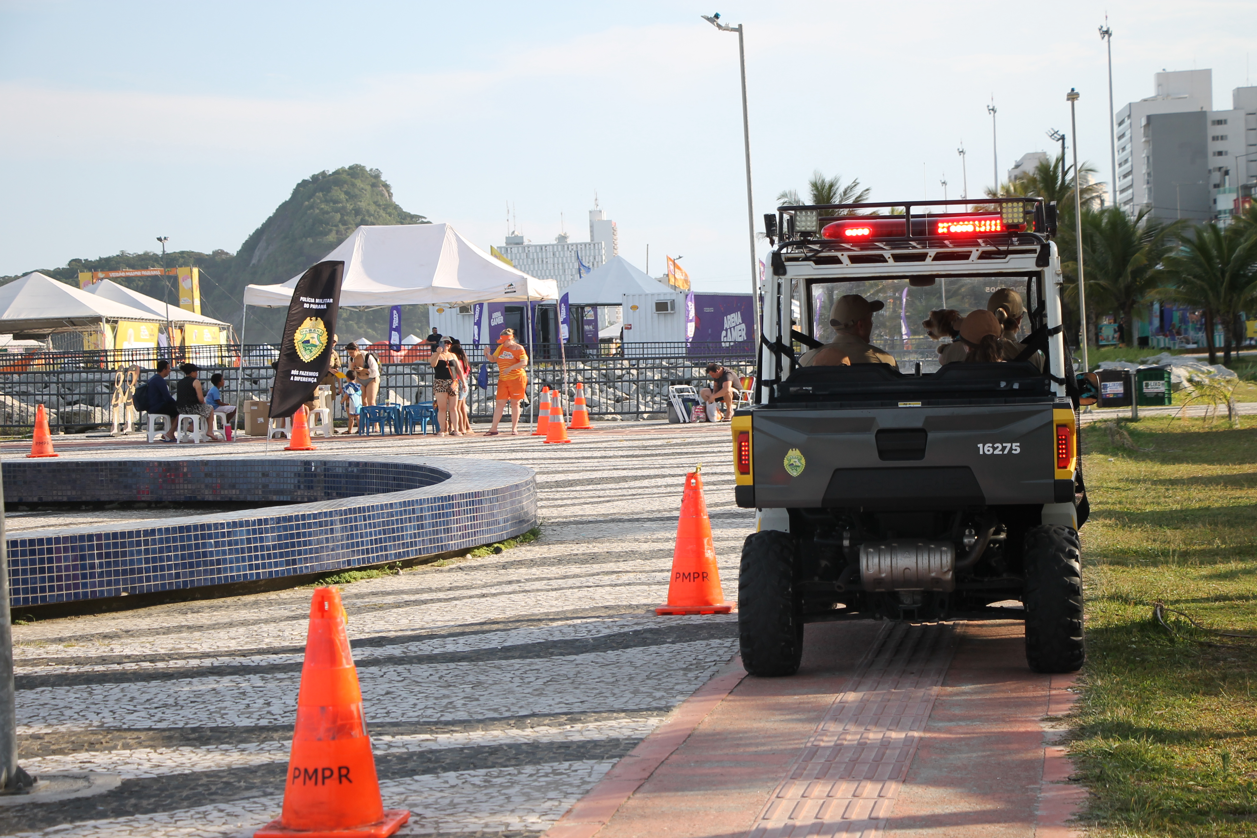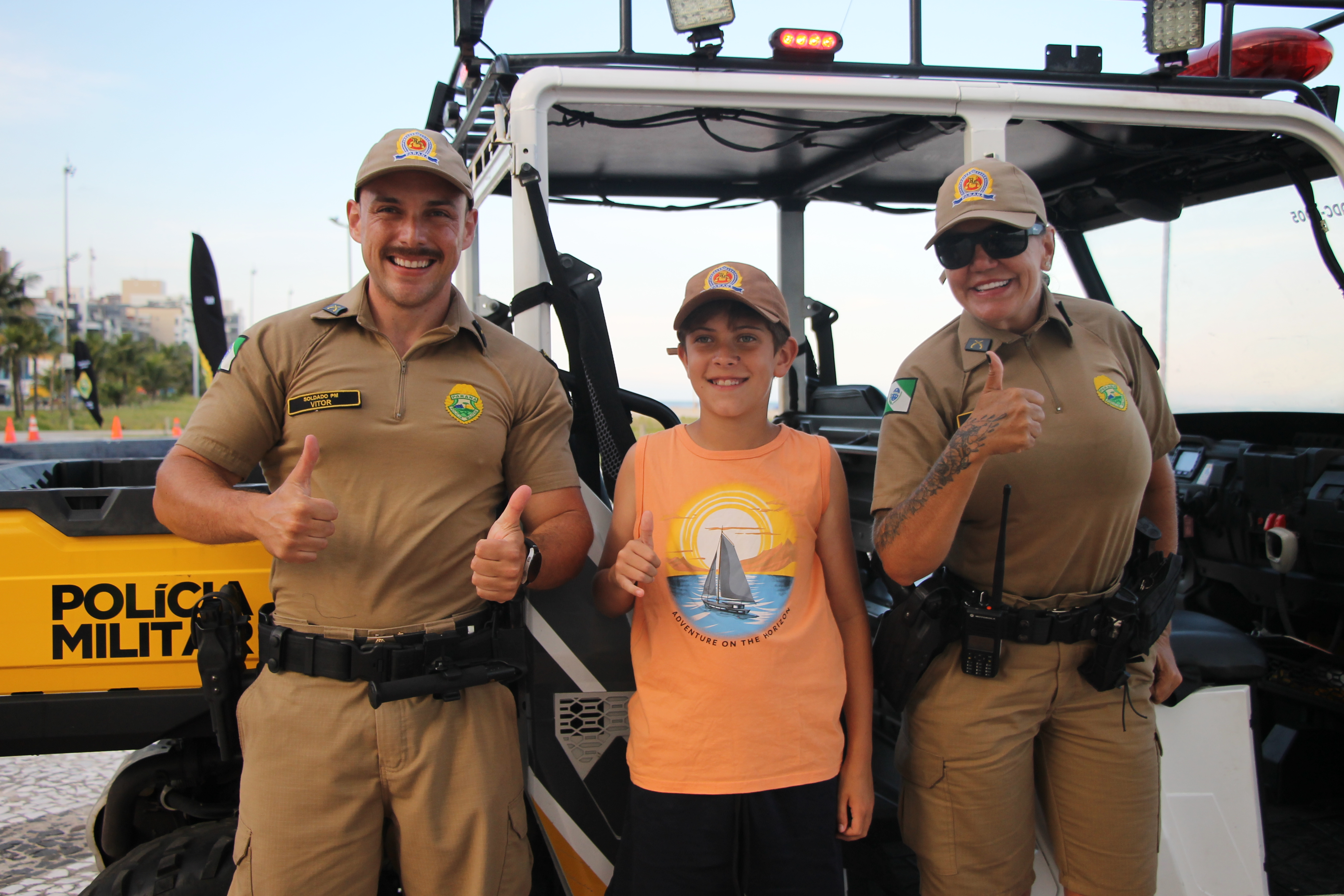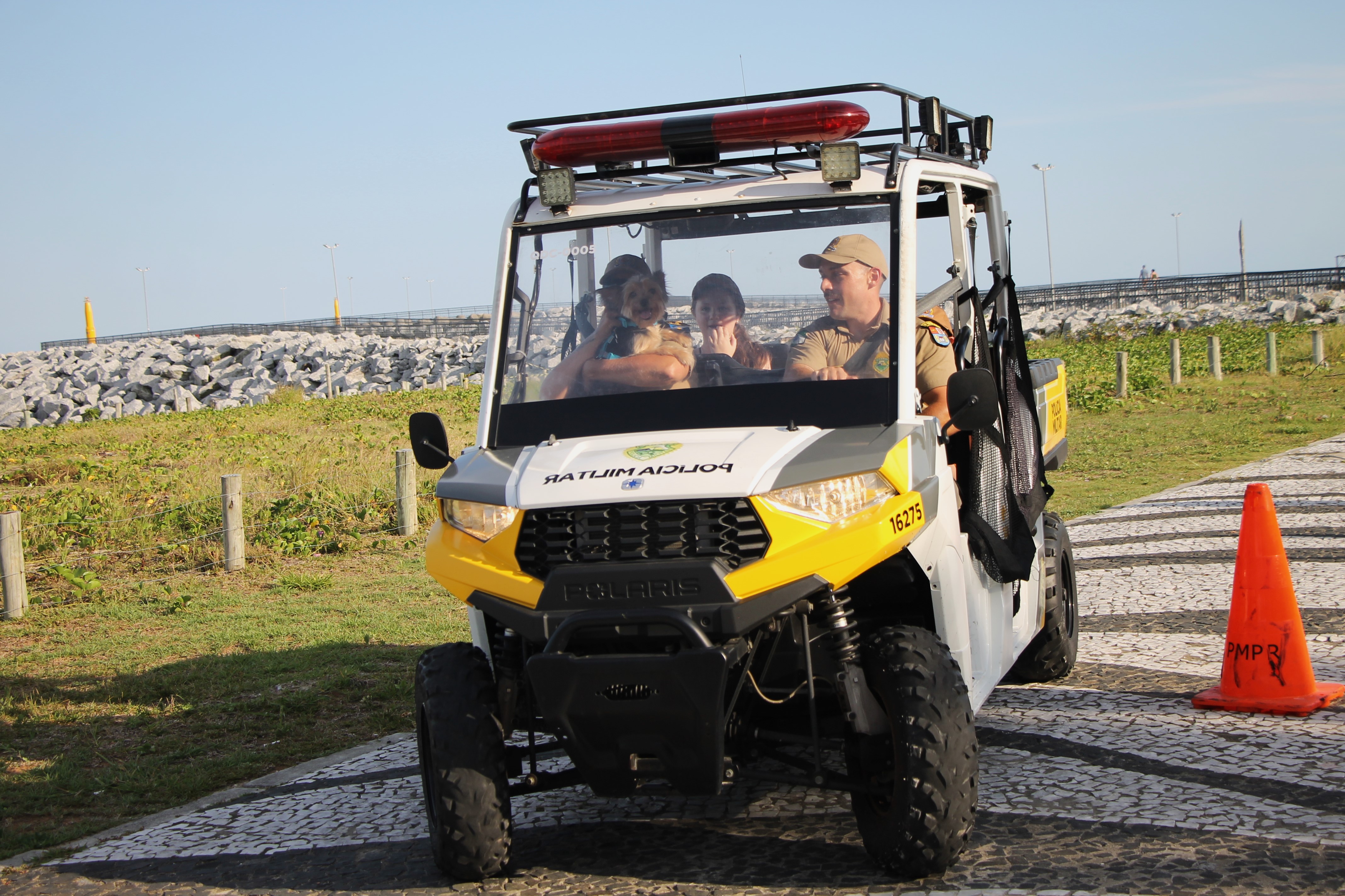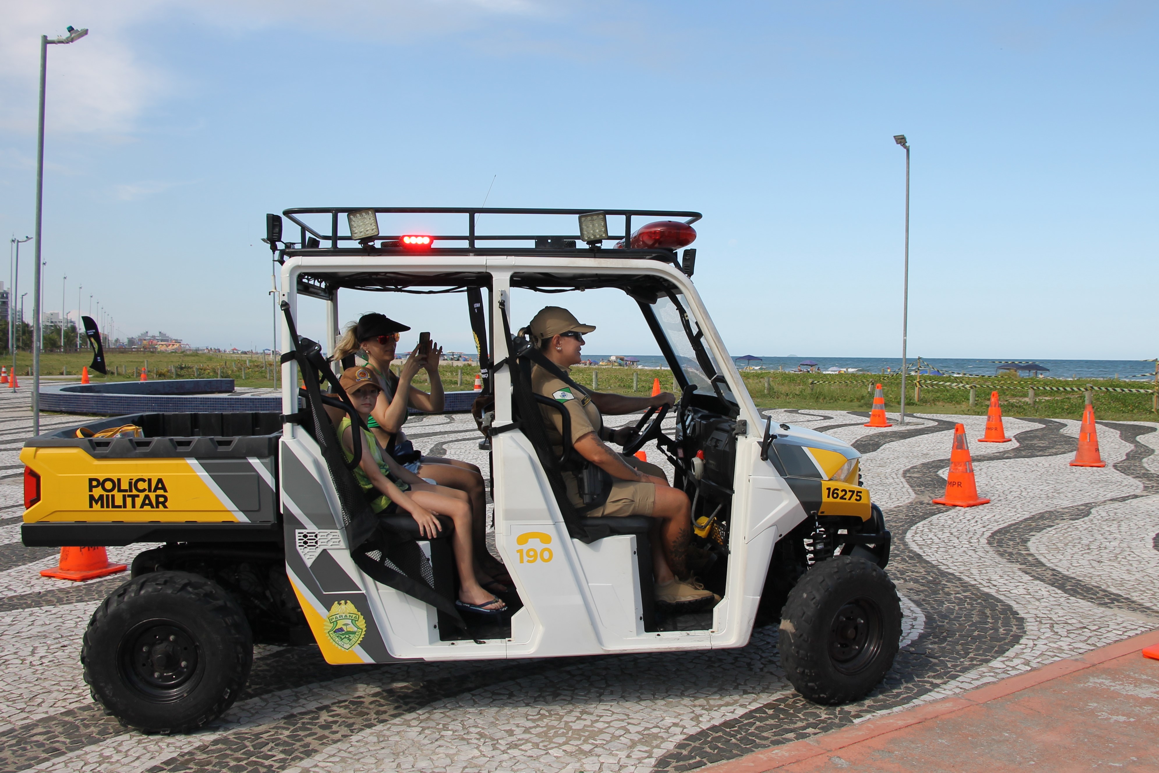 Sirene tocou, giroflex não assustou, pelo contrário, arrancou risadas! Nesta quarta-feira (28), no Molhe de Matinhos, a “Voltinha UTV PMPR” transformou o policiamento ostensivo em um verdadeiro momento de aproximação, aprendizado e diversão no litoral paranaense, especialmente para as crianças e suas famílias que aproveitam as praias do Estado.