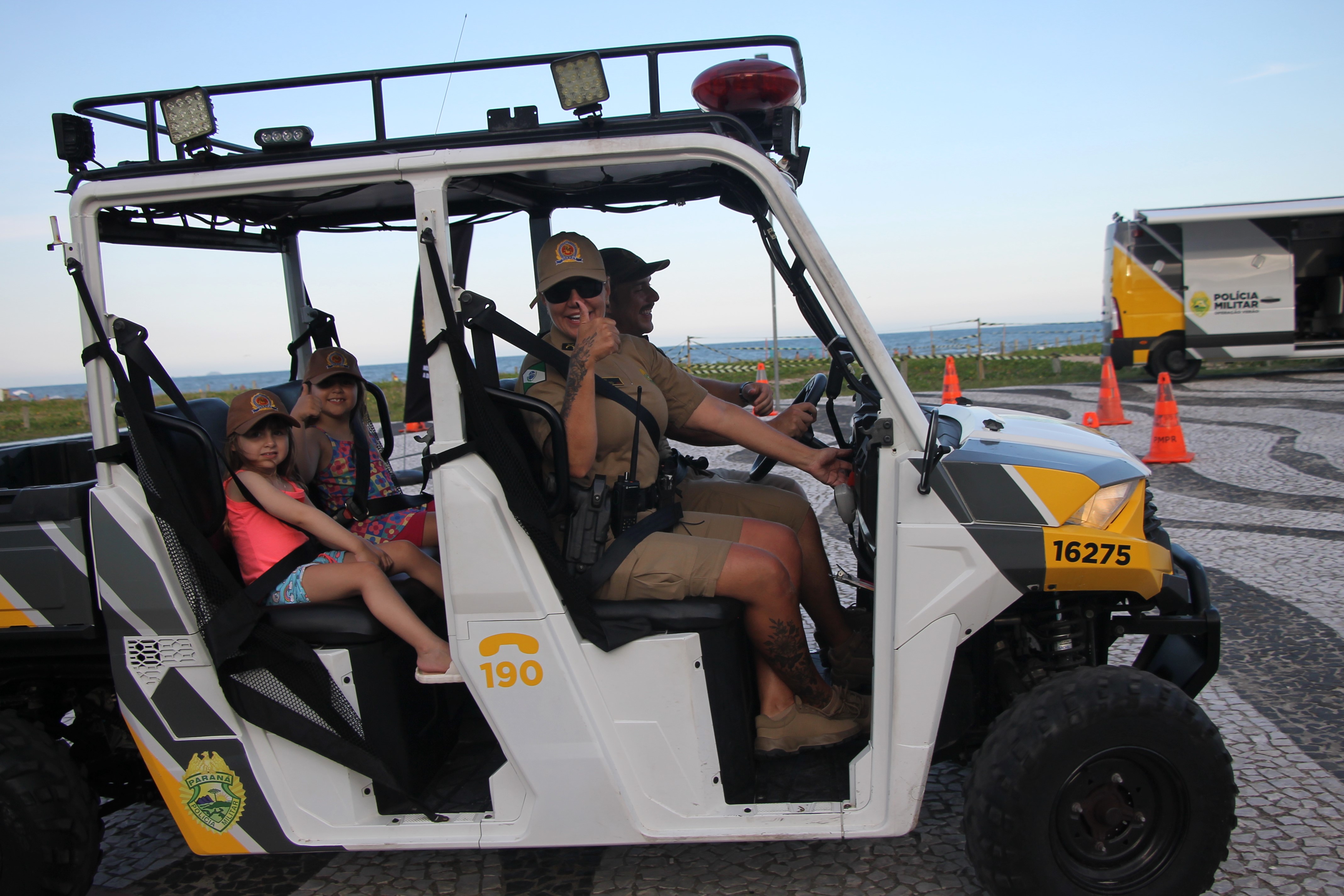Cinto afivelado e sorriso no rosto: a “Voltinha UTV PMPR” conquista a criançada no litoral 29/01/2026 - 07:13