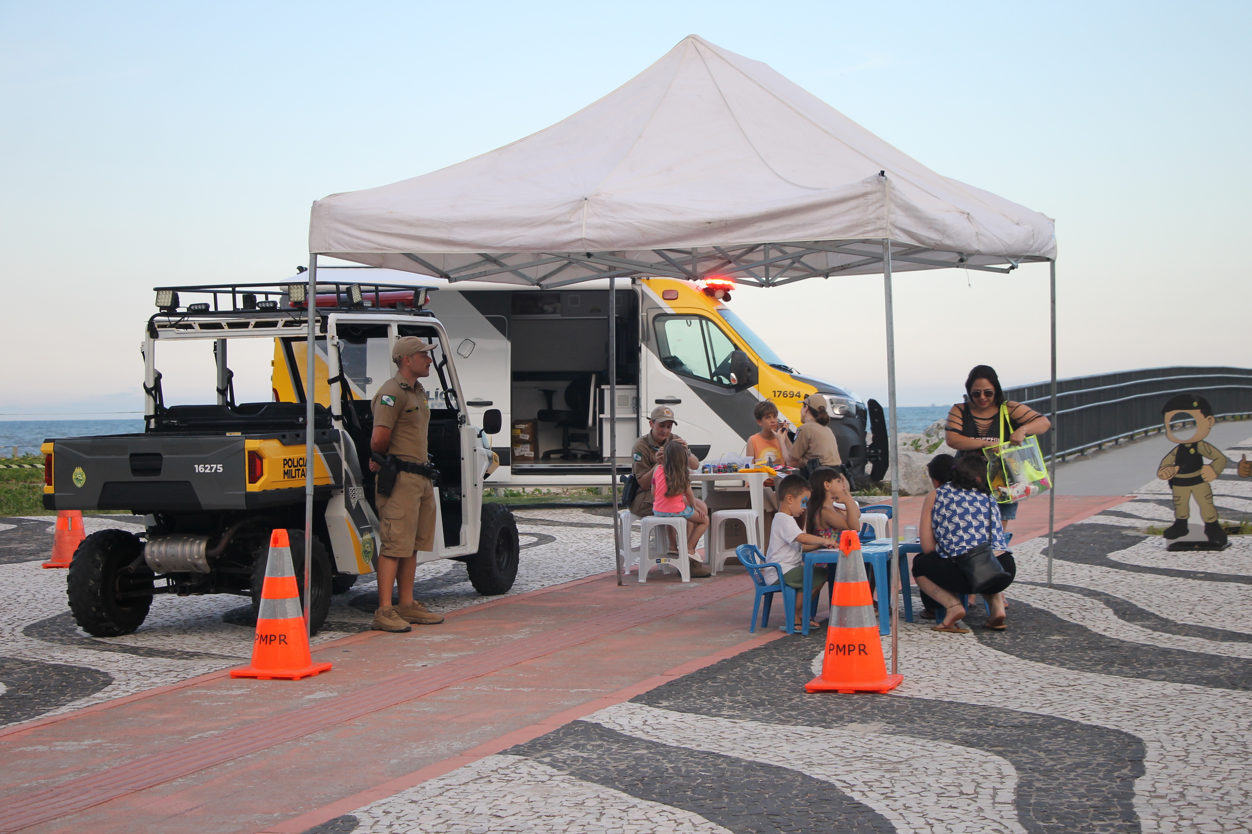 A interação com as crianças também cria memórias inesquecíveis. João Carlos, outro veranista, contou emocionado que o filho é fã da Polícia Militar do Paraná. “Para ele, poder entrar em uma viatura, colocar o boné da PMPR e conversar com os policiais é algo muito especial. É uma lembrança que ele vai guardar com muito carinho”, relatou.