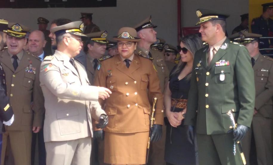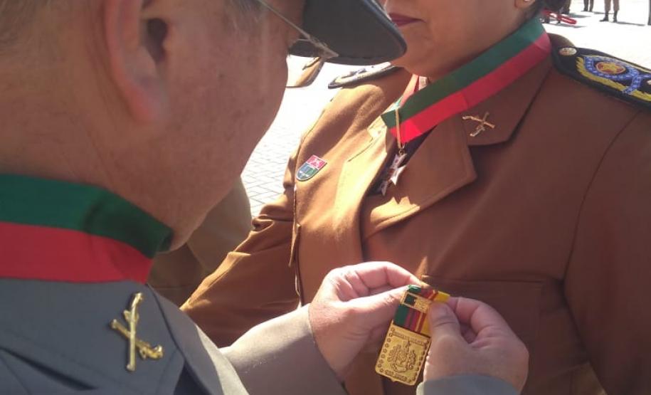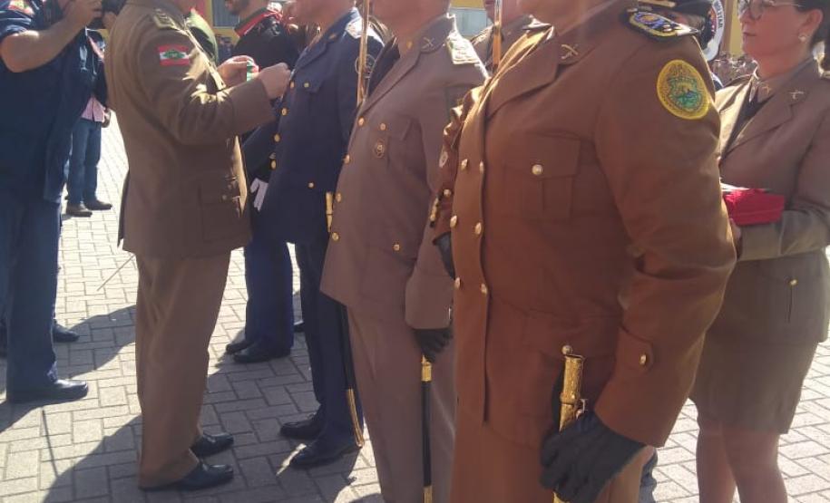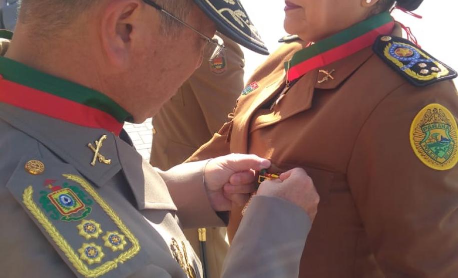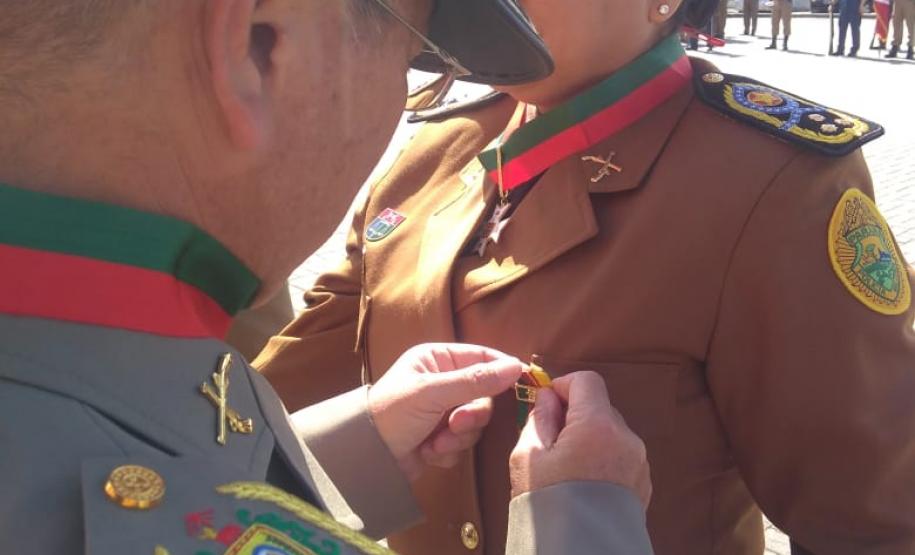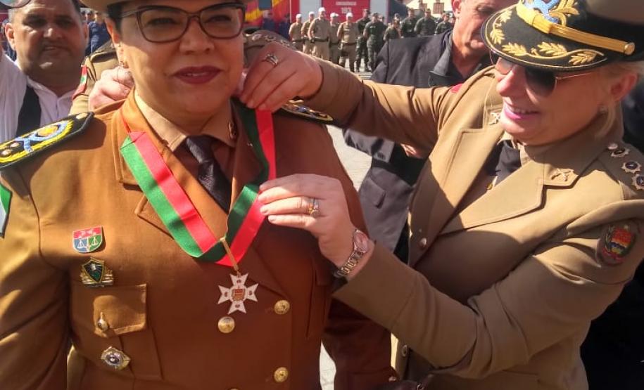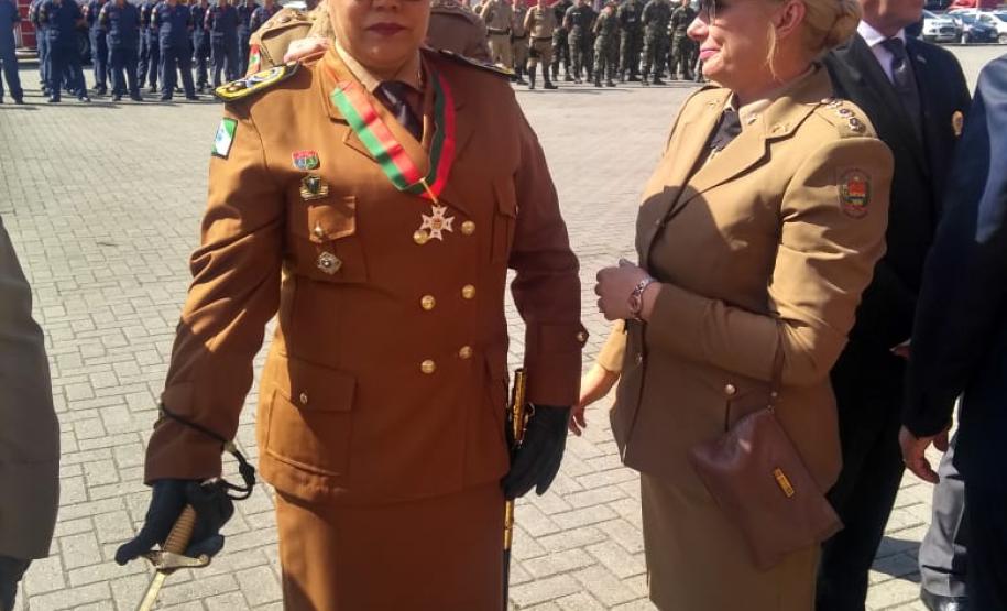 Durante a cerimônia comemorativa ao Dia de Santa Catarina, a Comandante-Geral da Polícia Militar do Paraná, coronel Audilene Rosa de Paula Dias Rocha, recebeu a medalha "Barriga Verde da Polícia Militar", entregue pelo Comando da Polícia Militar de Santa Catarina (SC), na última segunda-feira (26/11).