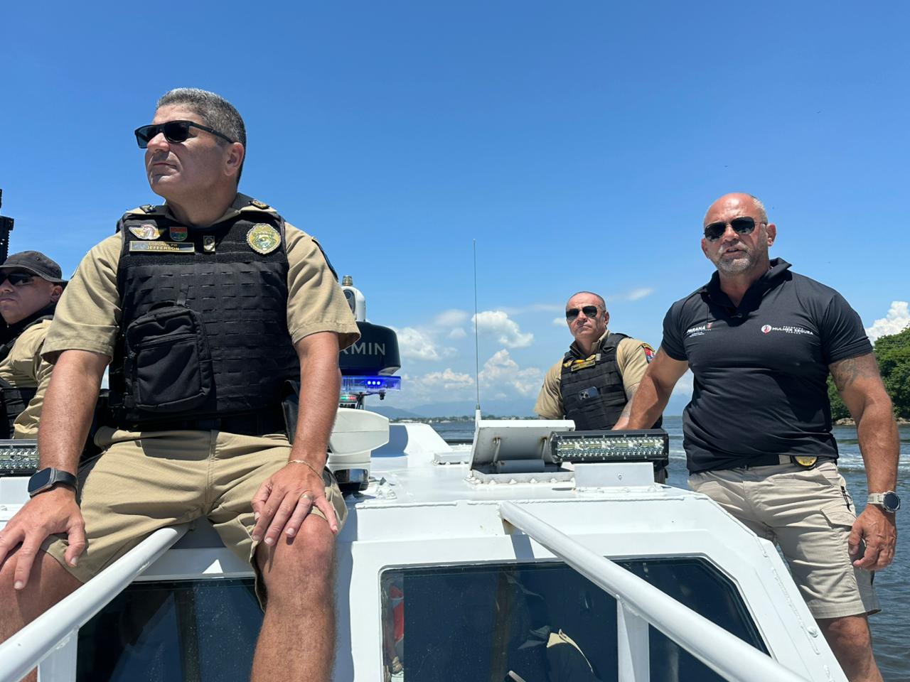 Na manhã desta sexta-feira (16), o Comandante-Geral da Polícia Militar do Paraná (PMPR), Coronel Jefferson Silva, realizou uma visita à Baía de Guaratuba, acompanhado pelo Secretário de Segurança Pública do Paraná, coronel veterano Hudson Leôncio Teixeira e pelo Comandante do 9º Batalhão de Polícia Militar (BPM), tenente-coronel Willians Taurino Moreira, para acompanhar de perto as ações de policiamento aquático desenvolvidas na região. Durante a agenda, o Comandante-Geral pôde observar parte da rotina operacional do 9º BPM, responsável pelas ações ostensivas de policiamento na costa leste do estado, verificando a eficácia das embarcações que atuam na proteção da costa através da Patrulha Costeira.