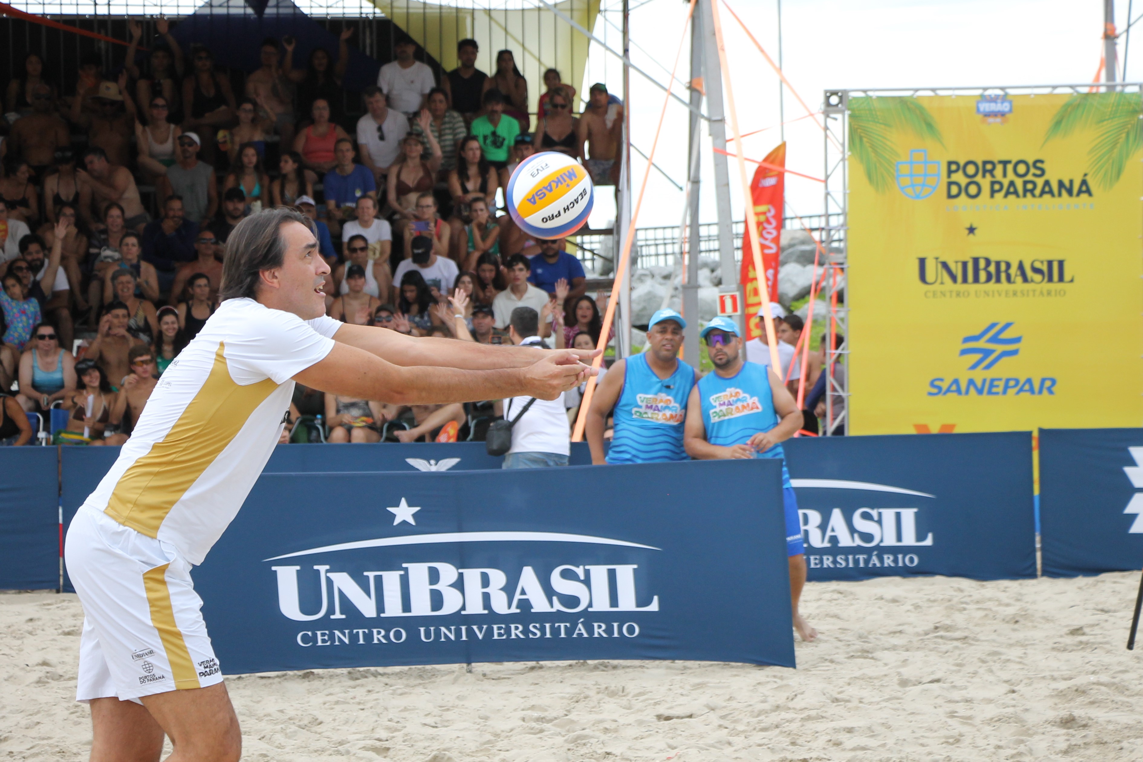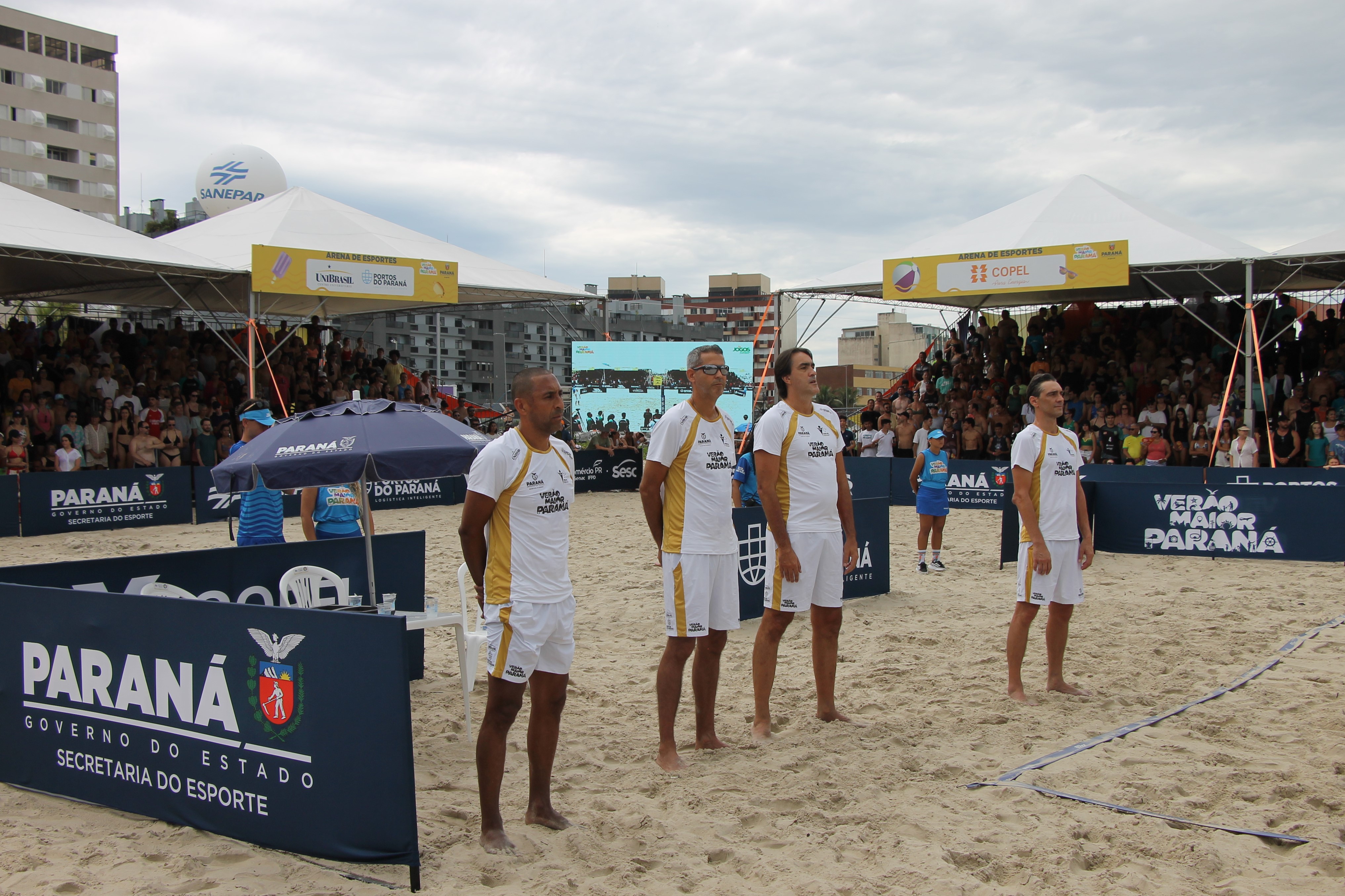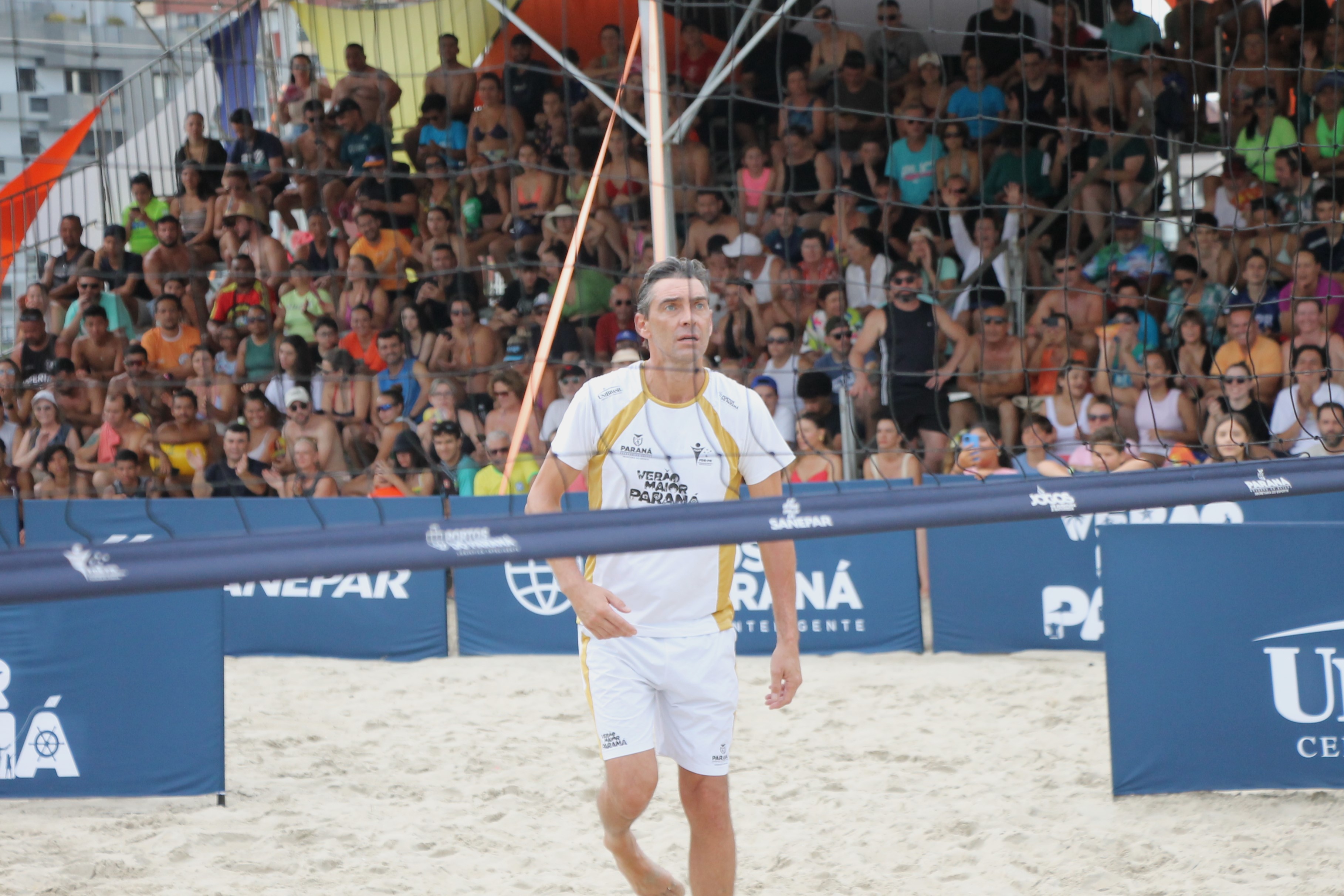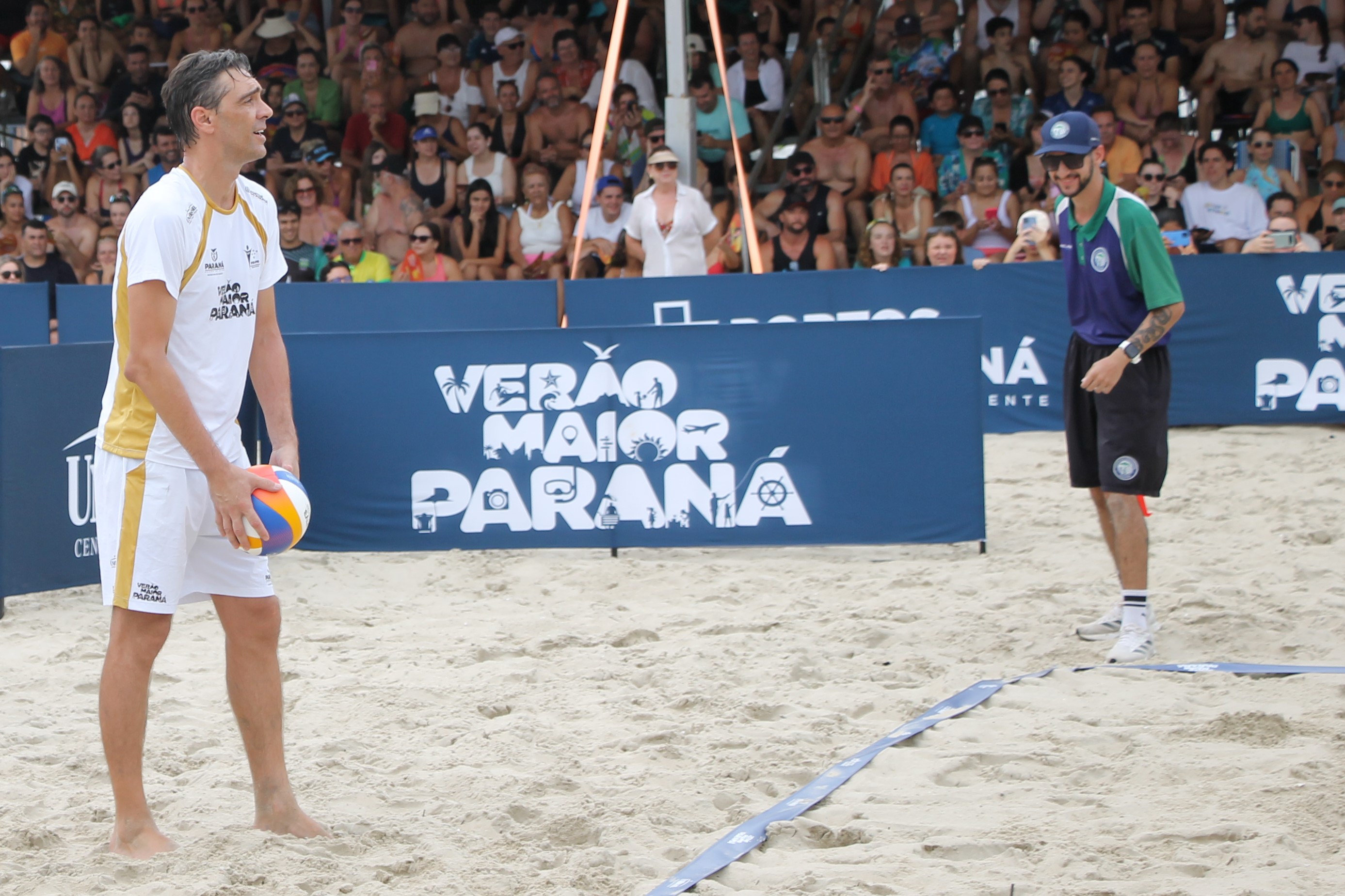 A arena, localizada na Avenida Atlântica, entre as ruas Apucarana e Ponta Grossa, foi tomada por um grande público que prestigiou um verdadeiro encontro de gerações do vôlei brasileiro. De um lado da quadra, quatro lendas do esporte nacional: Giba, Dante, Serginho e Rodrigão, campeões olímpicos que marcaram época e elevaram o nome do Brasil no cenário mundial. Do outro, um selecionado paranaense master, formado por atletas consagrados do circuito brasileiro de vôlei de praia — Marquinhos, Arthur, Clésio e Raphael — garantindo um duelo equilibrado, técnico e repleto de emoção.
