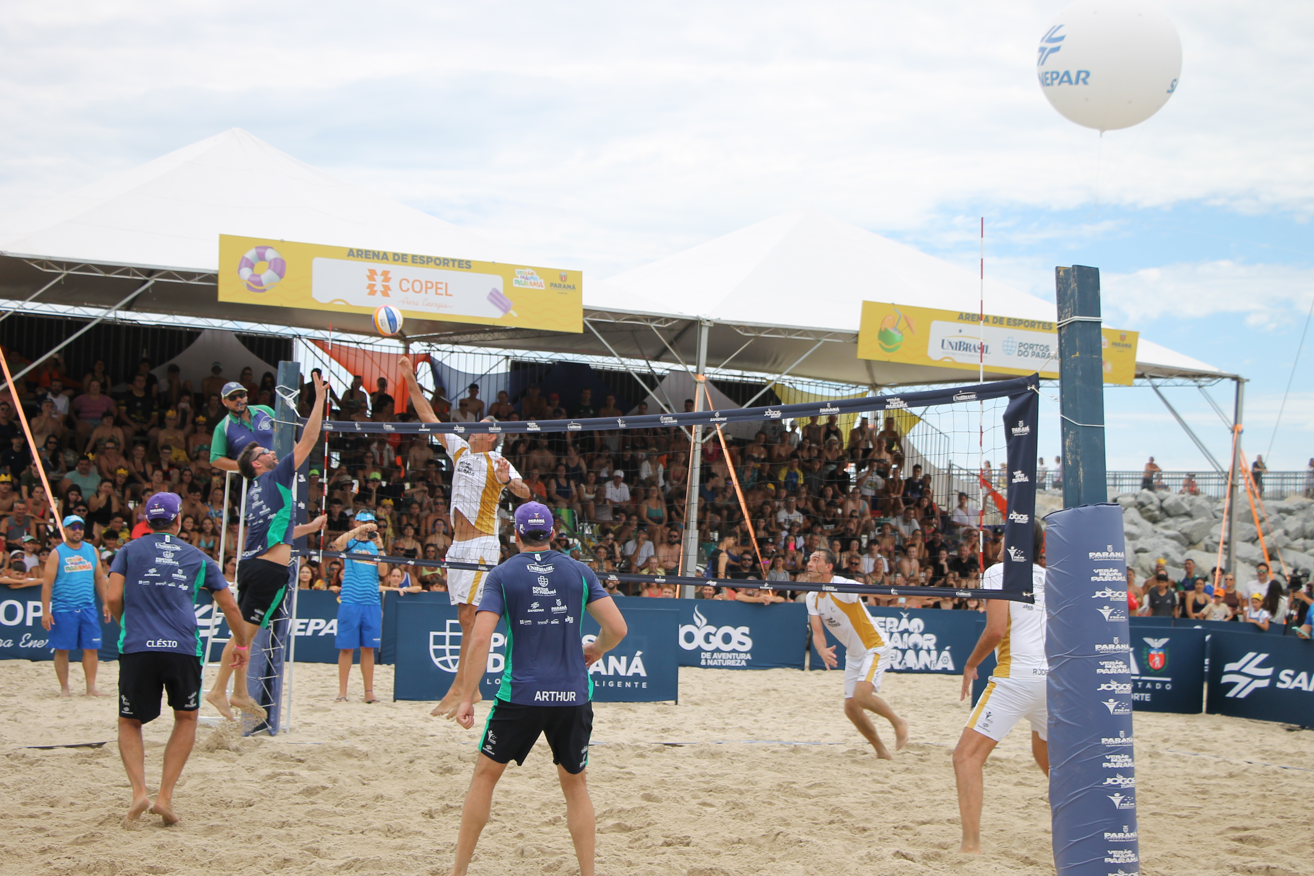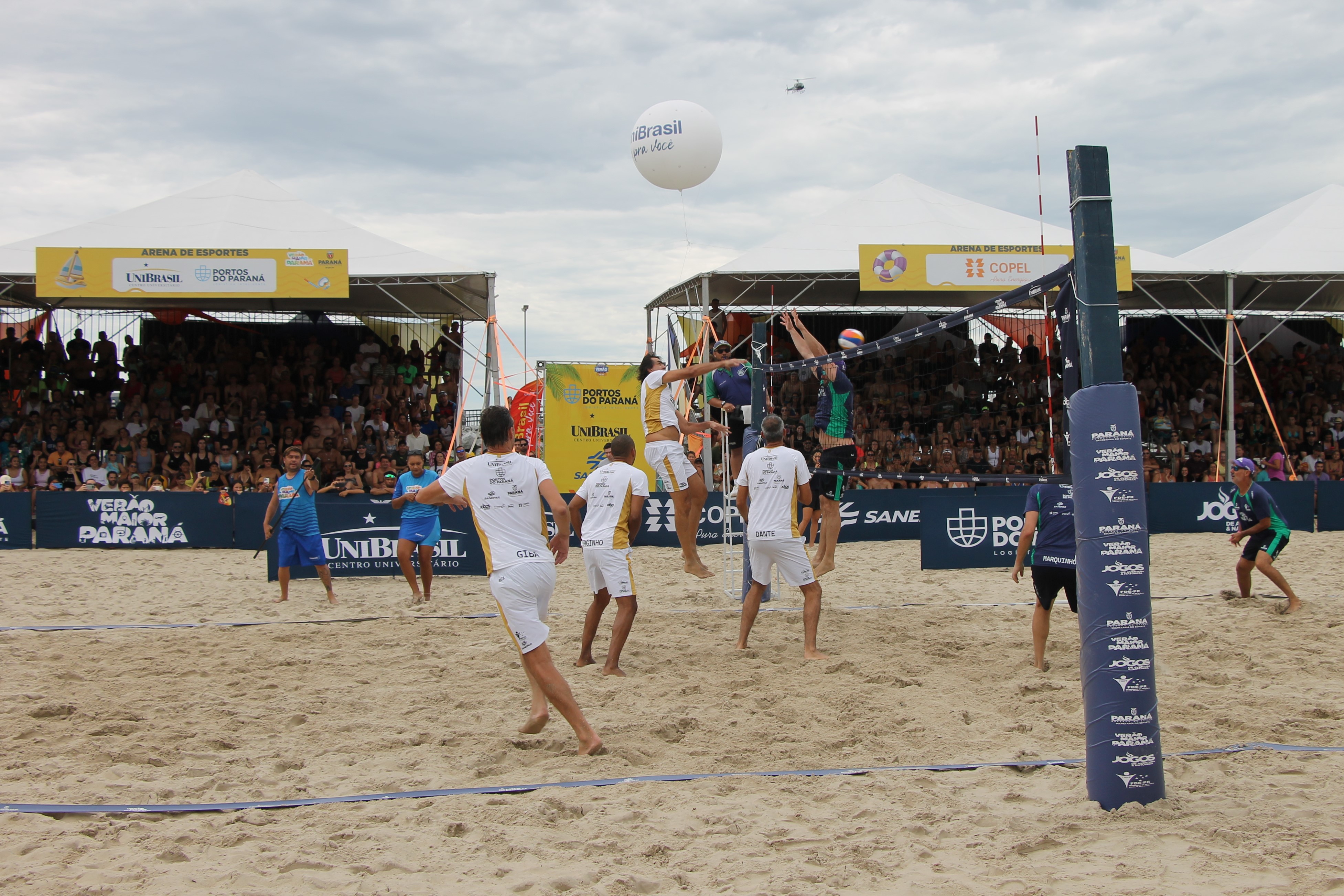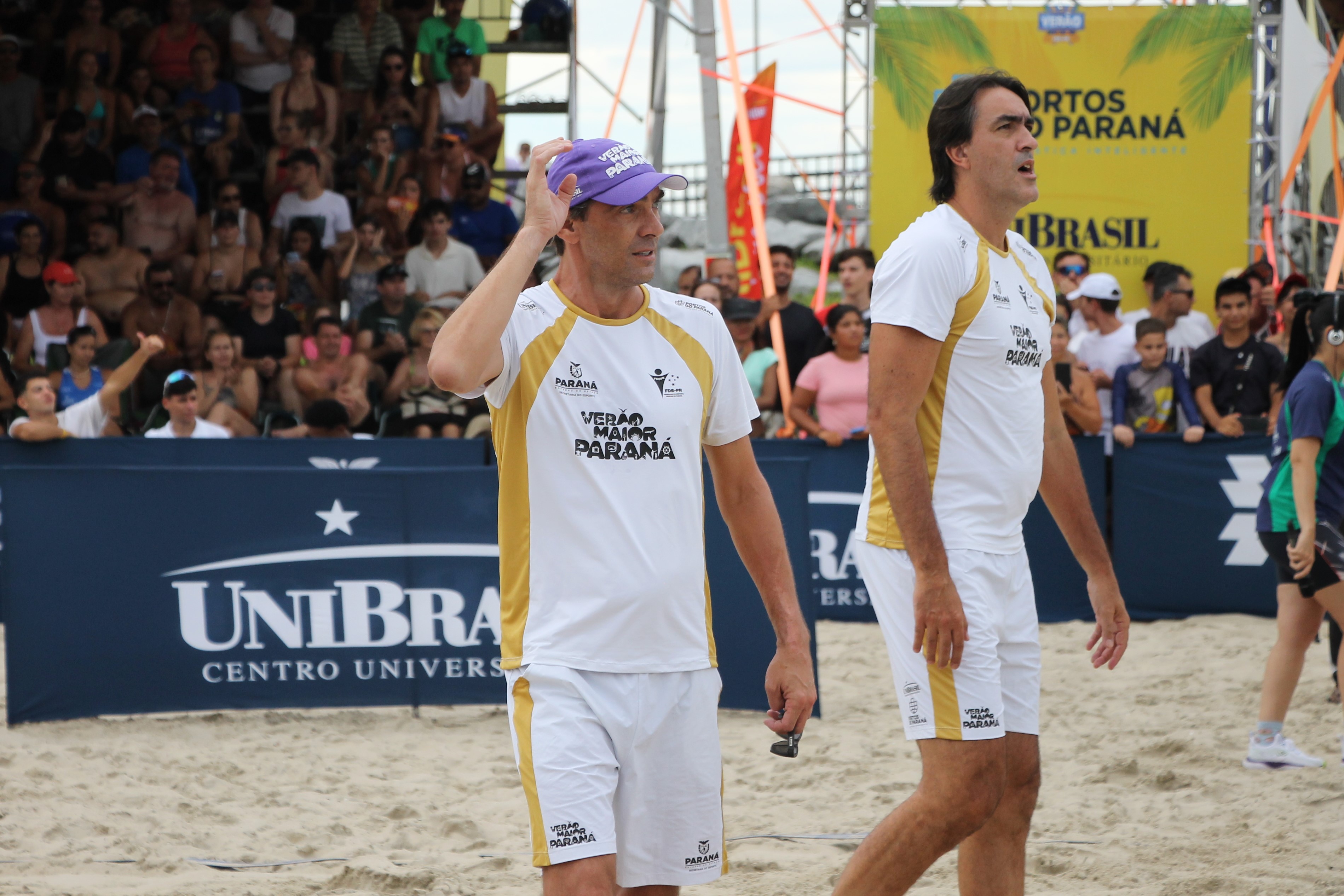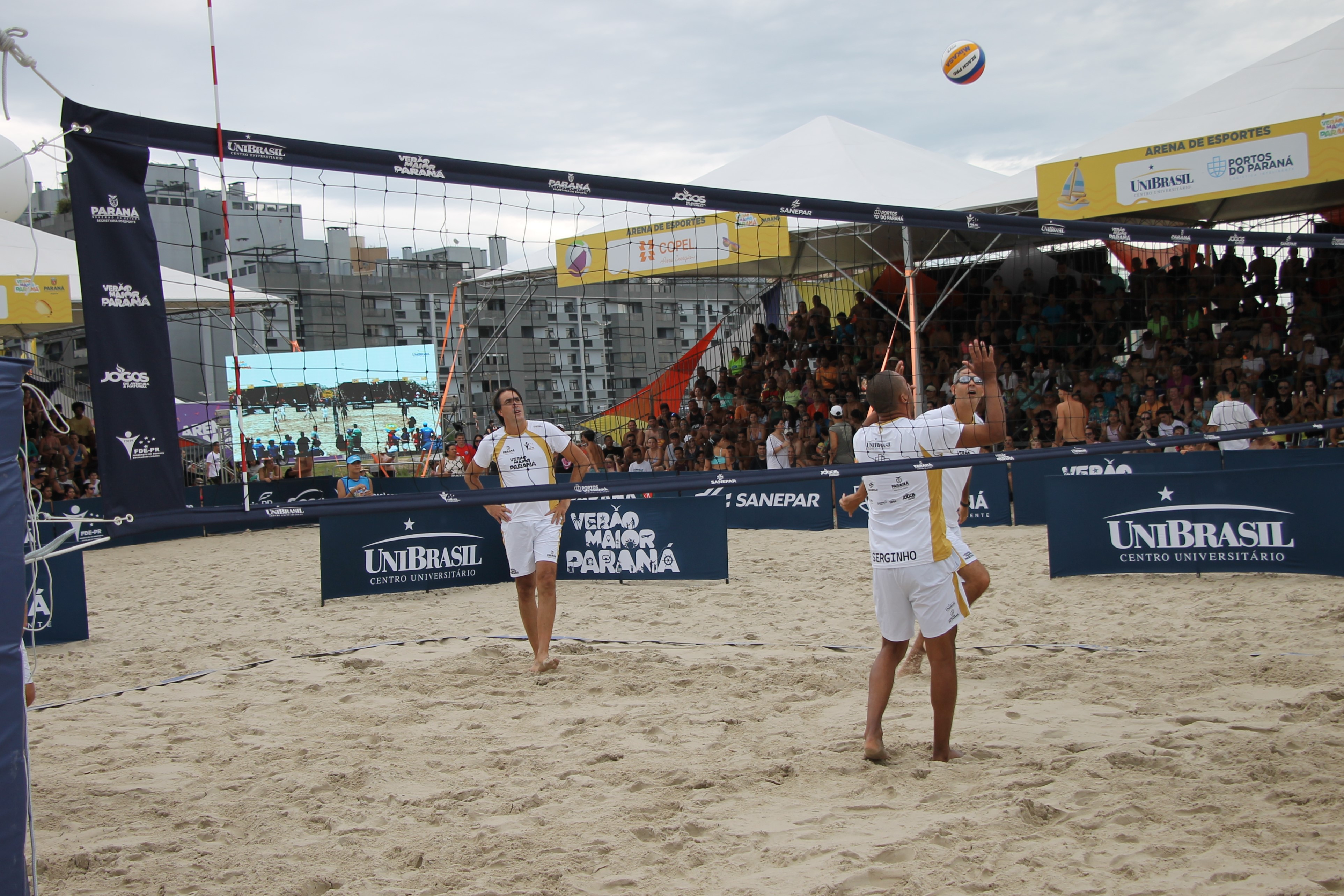 A arena, localizada na Avenida Atlântica, entre as ruas Apucarana e Ponta Grossa, foi tomada por um grande público que prestigiou um verdadeiro encontro de gerações do vôlei brasileiro. De um lado da quadra, quatro lendas do esporte nacional: Giba, Dante, Serginho e Rodrigão, campeões olímpicos que marcaram época e elevaram o nome do Brasil no cenário mundial. Do outro, um selecionado paranaense master, formado por atletas consagrados do circuito brasileiro de vôlei de praia — Marquinhos, Arthur, Clésio e Raphael — garantindo um duelo equilibrado, técnico e repleto de emoção.