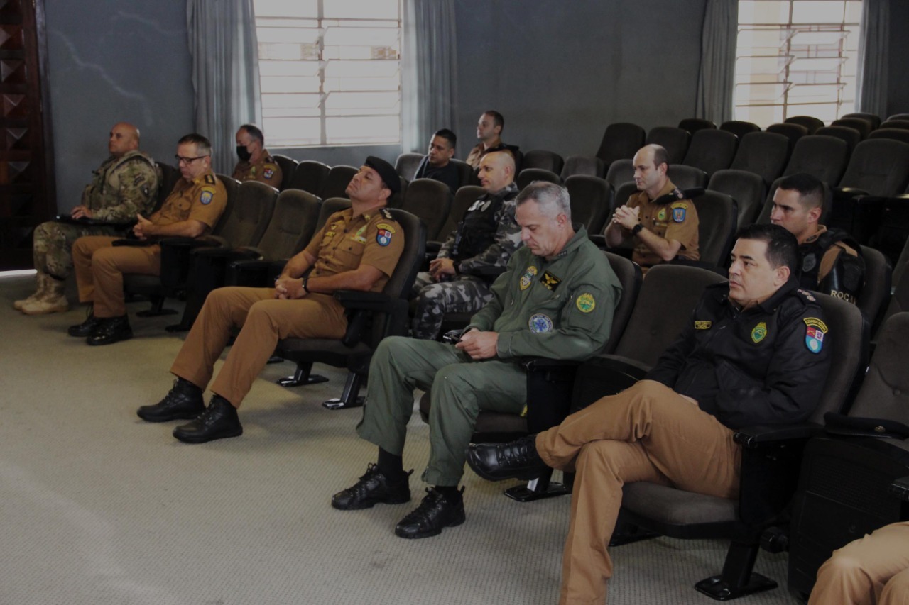 Nesta manhã de sexta-feira (29/04), o Comandante-Geral da PMPR, Coronel Hudson Leôncio Teixeira, convocou reunião no auditório do Quartel do Comando-Geral, com os Comandantes envolvidos na ação em Guarapuava-PR no último dia 17/04.